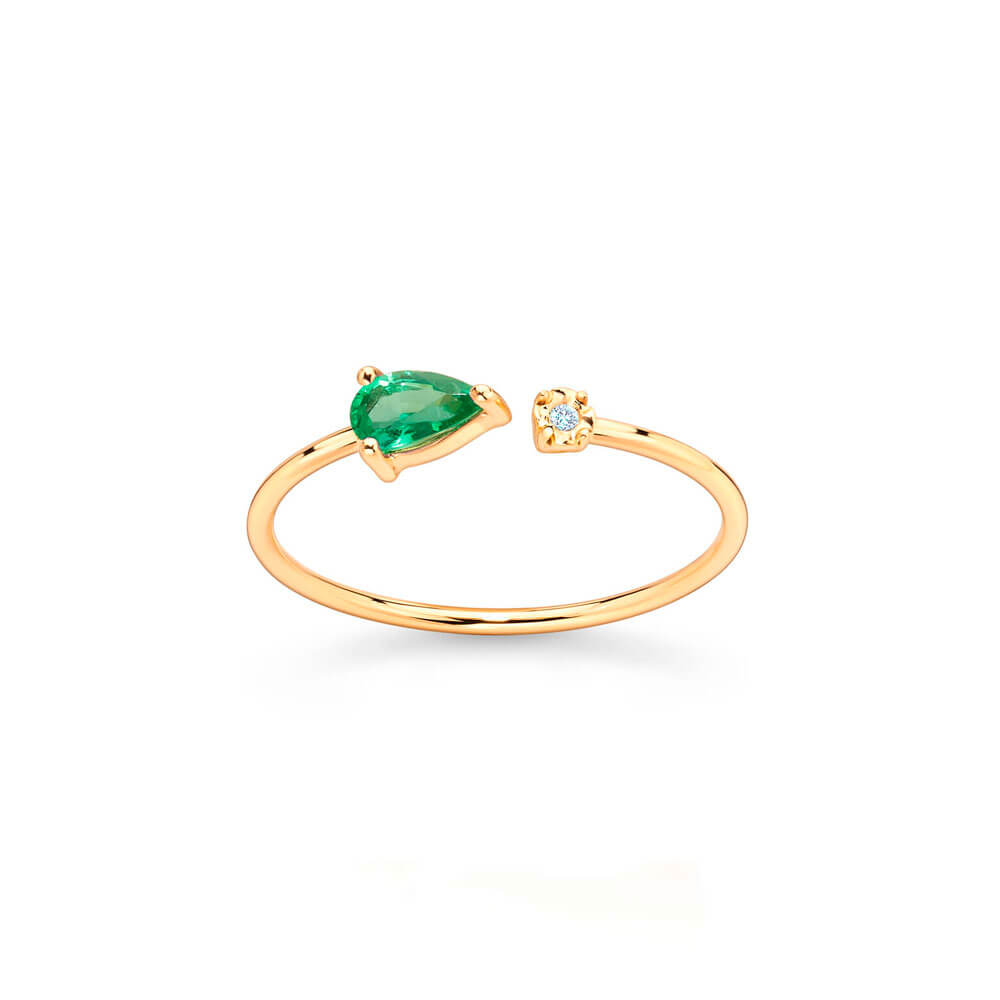 Anel em ouro 18k amarelo com esmeralda e 0,02ct de brilhante.