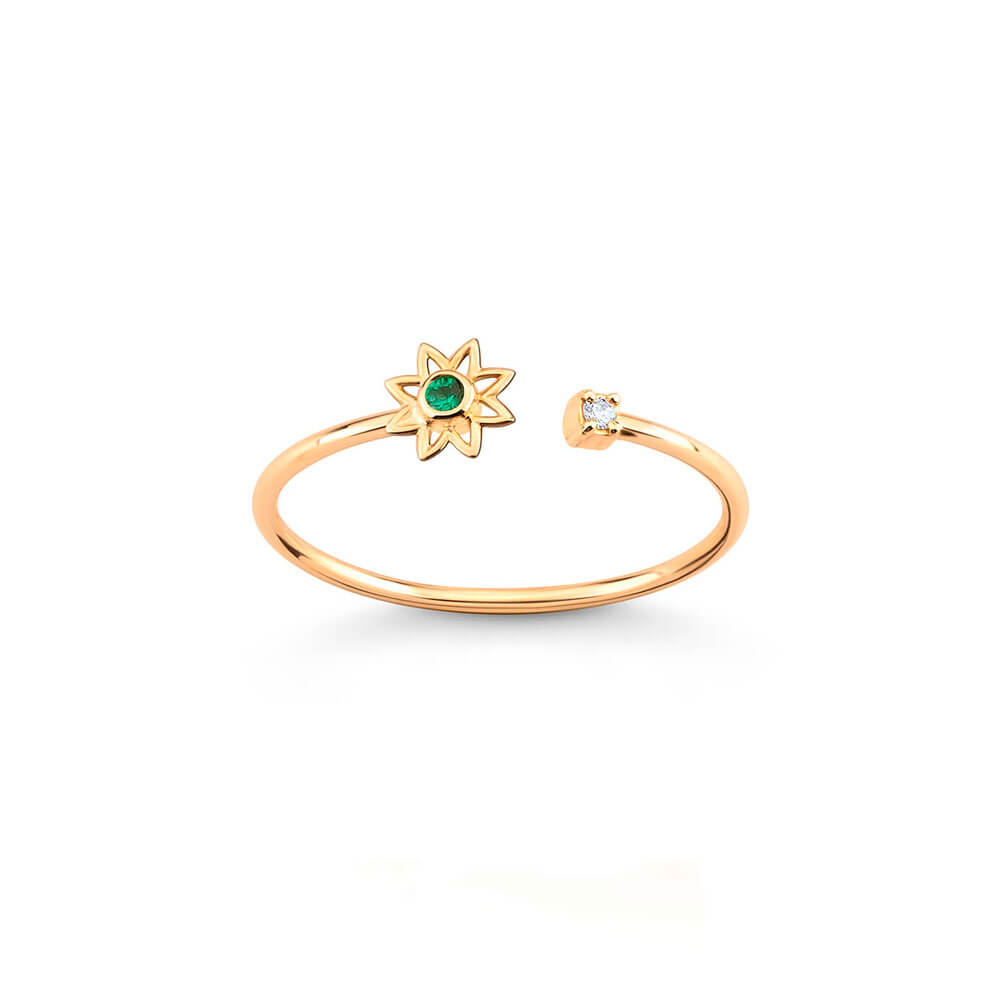 Anel em ouro 18k amarelo com esmeralda e 0,01ct de brilhante.