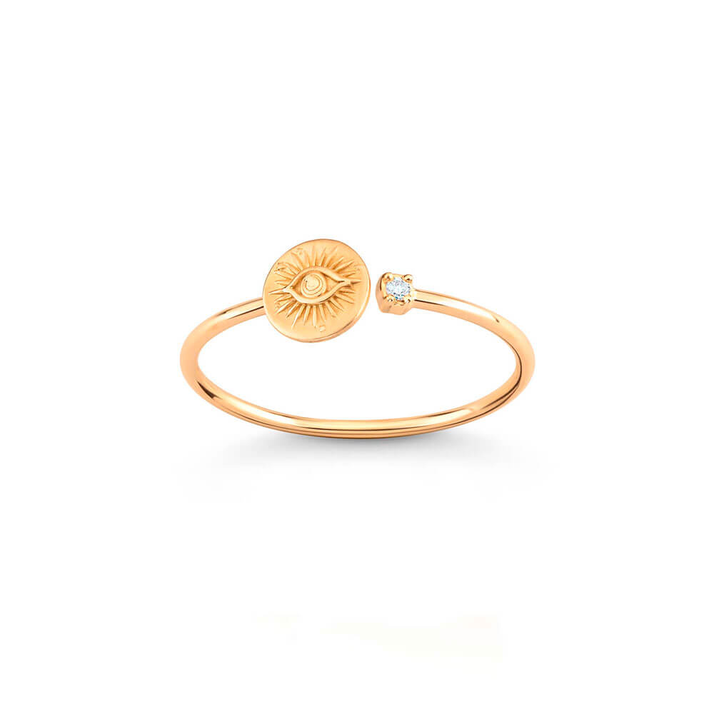 Anel em ouro 18k amarelo e 0,01ct de brilhante. Medalha mede 0,5cm.