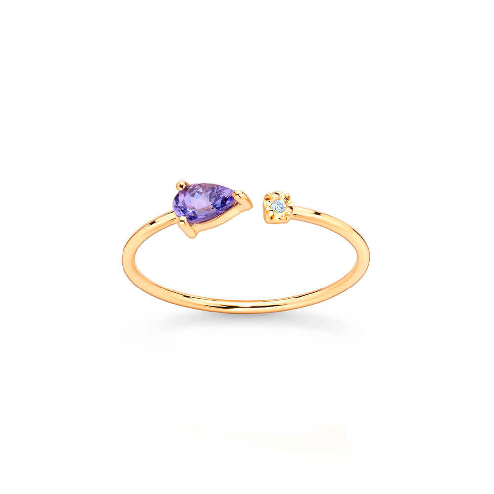 Anel em ouro 18k amarelo com tanzanita e 0,02ct de brilhante.