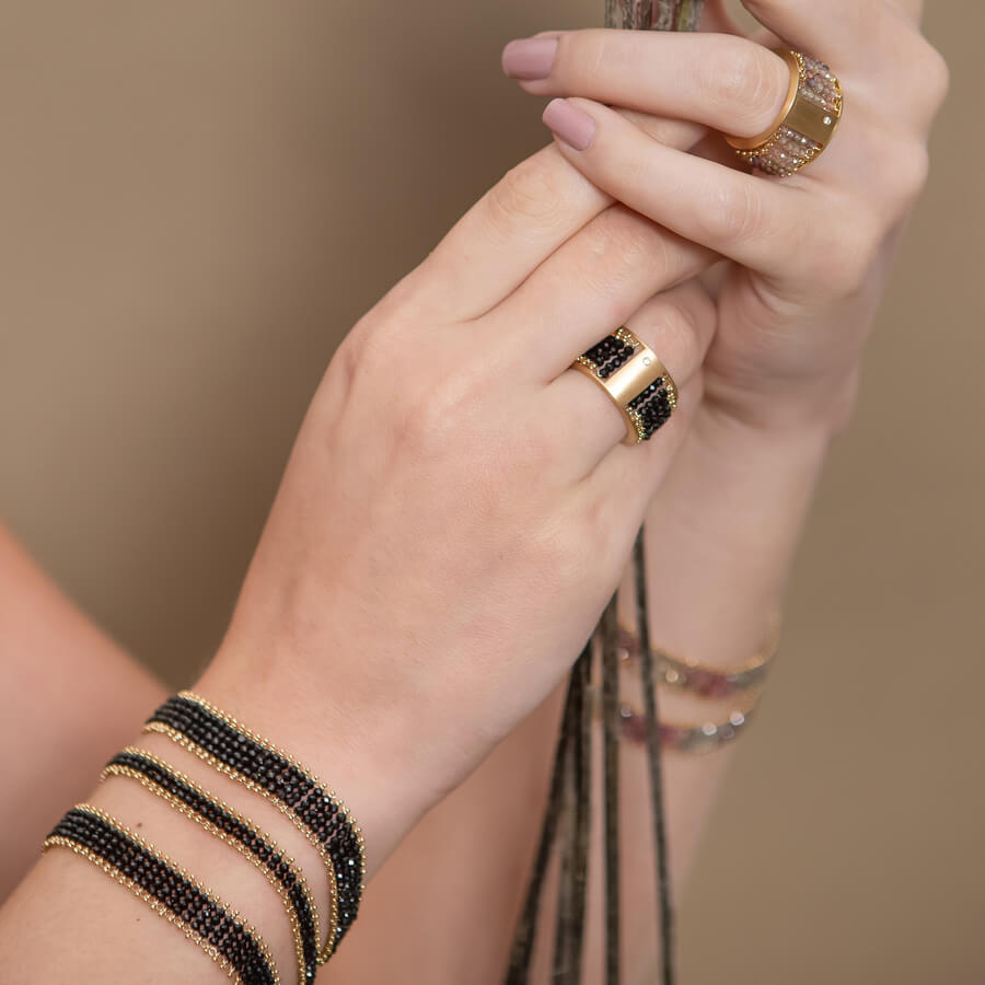 Anel em ouro 18k amarelo com espinélio e brilhante.