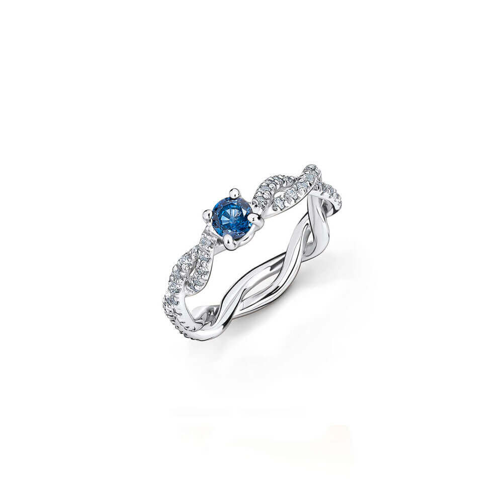 Anel em ouro 18k branco com safira e 0,40cts brilhantes.