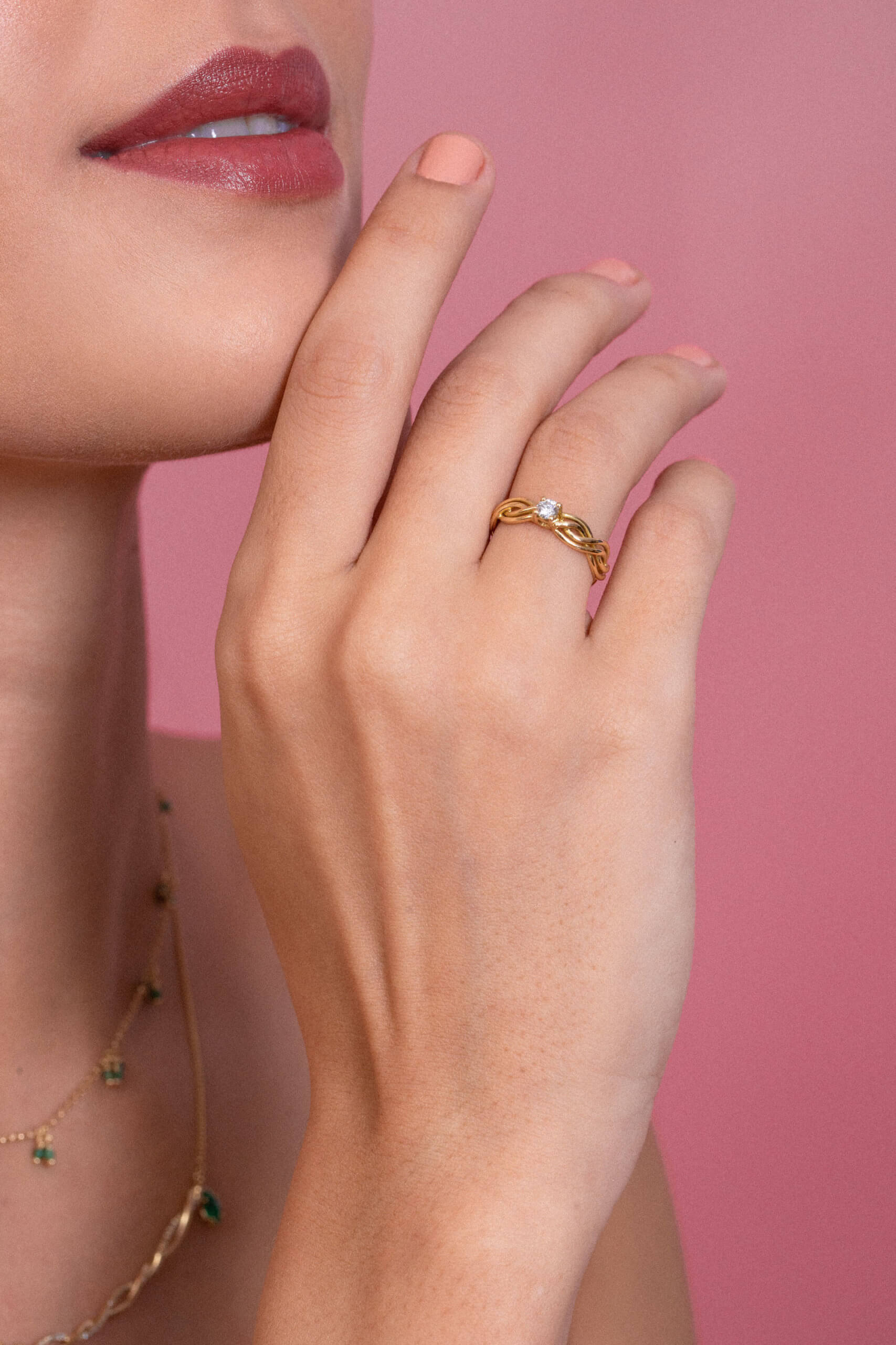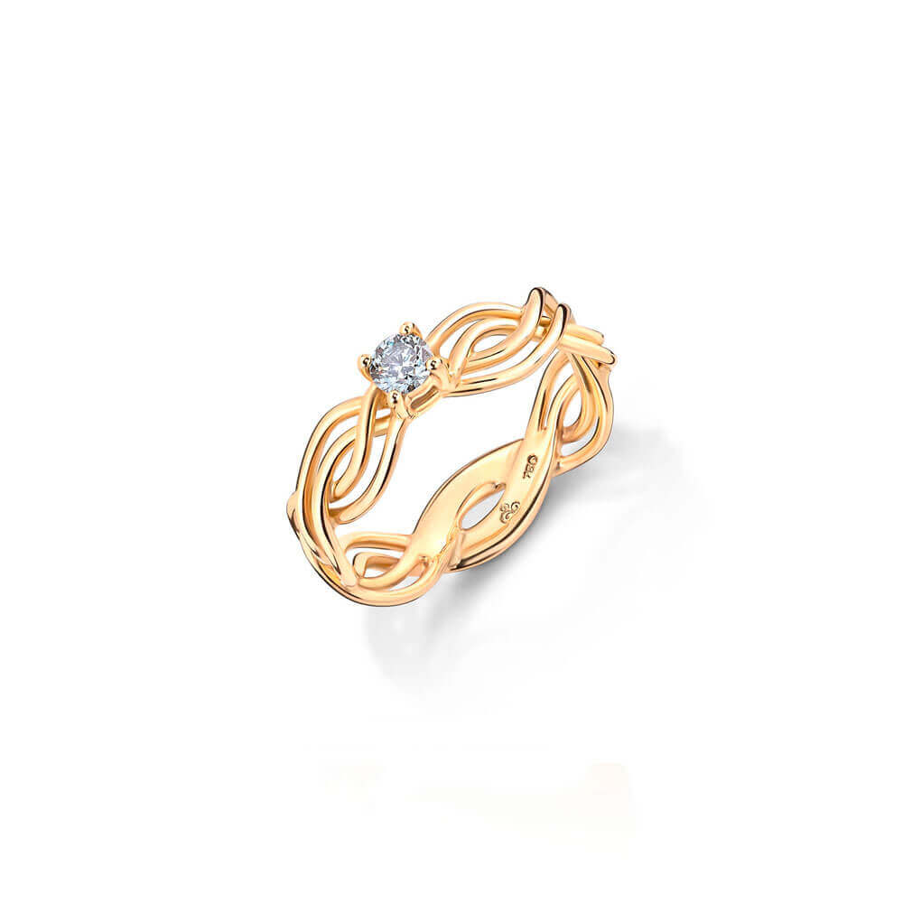 Anel em ouro 18k amarelo, branco ou rosa com diamante de 0,15ct.