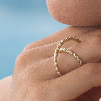 O anel é confortável e ao mesmo tempo emana nossa imaginação em relação a como o anel é posto no dedo e como os fios são mantidos no ar. Dependendo do ângulo em que é visto, o anel muda completamente, desafiando as leis da gravidade.