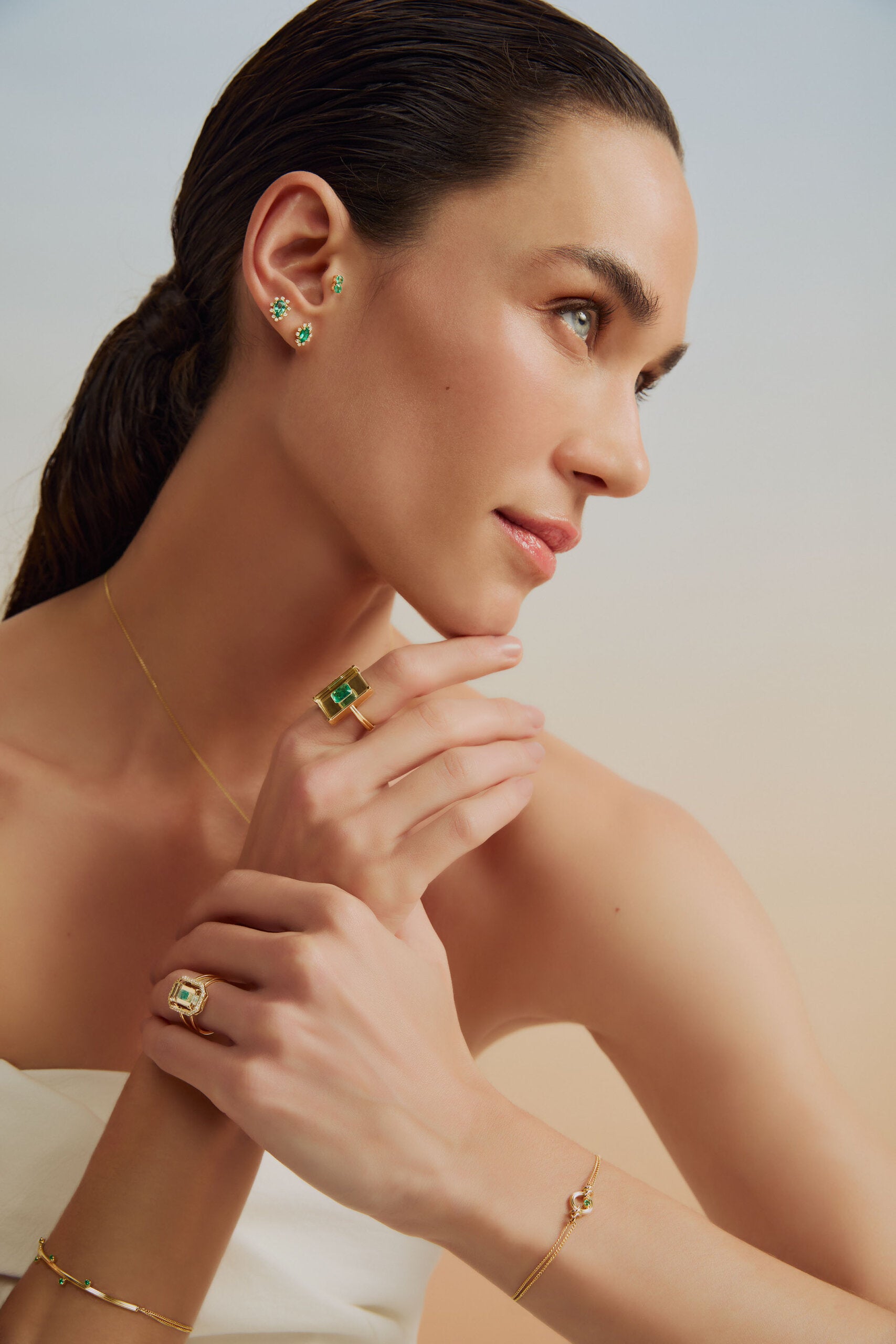 A coleção ONE OF A KIND traz joias exclusivas e irrepetíveis, criadas em edições limitadas com design sofisticado e autoral. Esmeraldas incrustadas no cristal e brilhantes delicadamente aplicados realçam a beleza e a singularidade de cada peça. Feitas com precisão artesanal, essas joias carregam significado e se tornam verdadeiros tesouros pessoais.