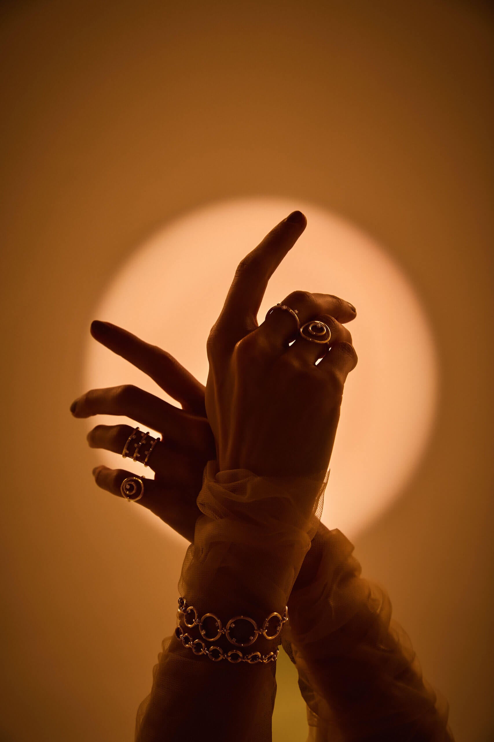 A coleção Golden Hour é inspirada na magia dos raios solares durante a hora dourada, quando a luz cria sombras suaves e transforma tudo ao redor com um brilho único. Feitas com fios raiados e detalhes que evocam movimento e fluidez, as joias desta coleção capturam a leveza e a harmonia desse momento especial.