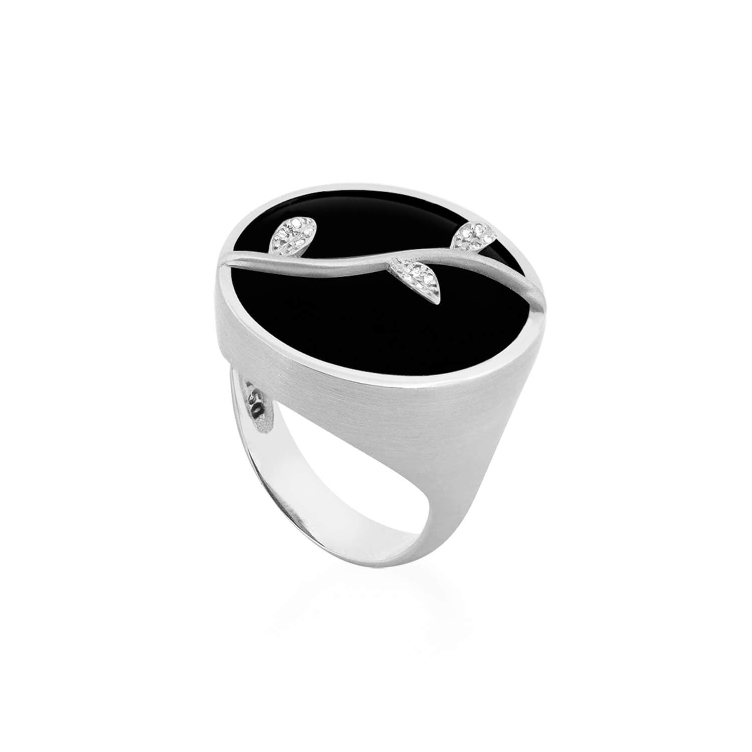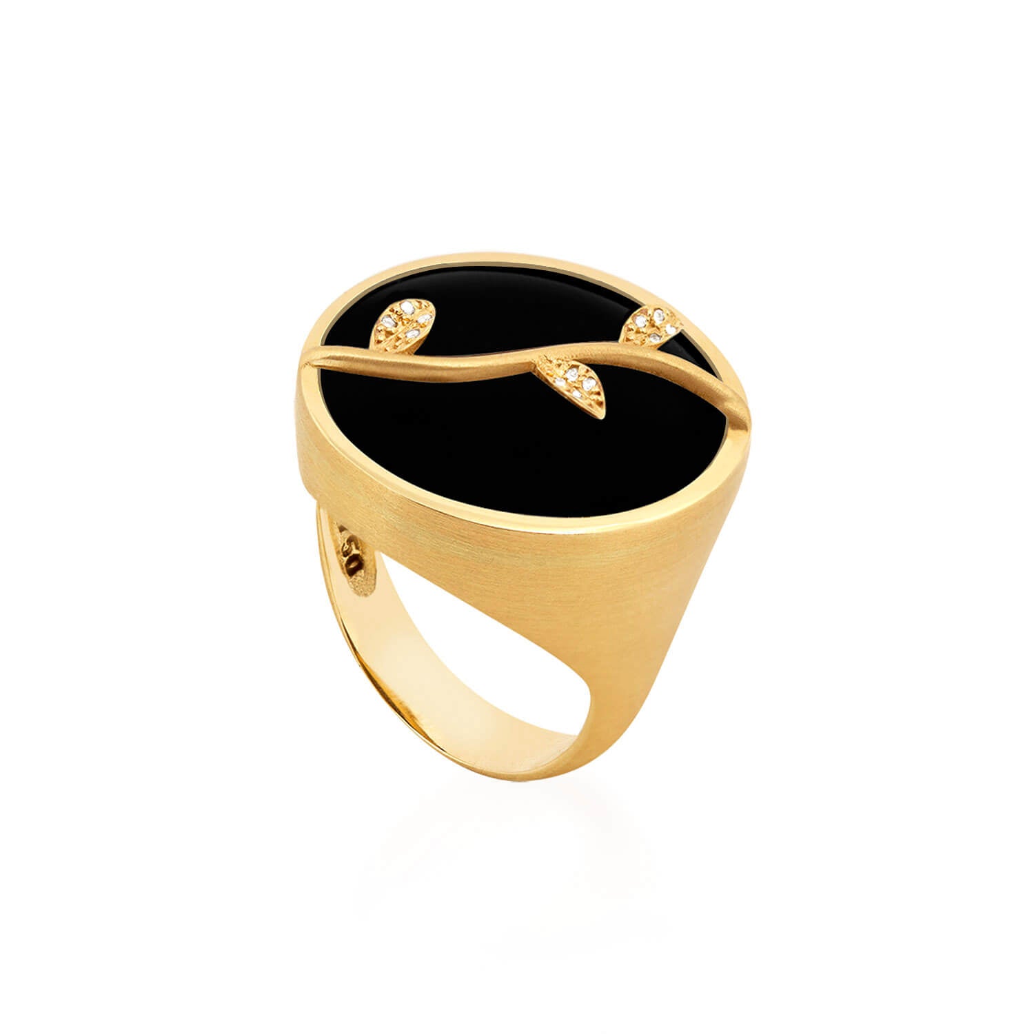 Anel em ouro 18k amarelo ou branco com ônix e brilhantes.
