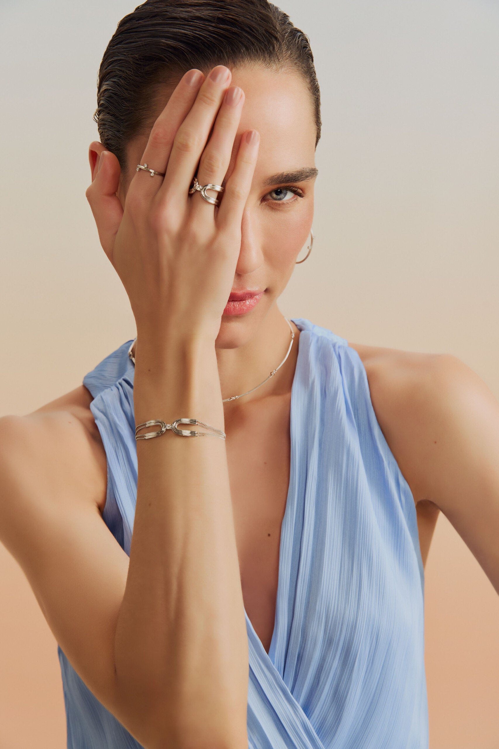 A coleção Golden Hour é inspirada na magia dos raios solares durante a hora dourada, quando a luz cria sombras suaves e transforma tudo ao redor com um brilho único. Feitas com fios raiados e detalhes que evocam movimento e fluidez, as joias desta coleção capturam a leveza e a harmonia desse momento especial.
