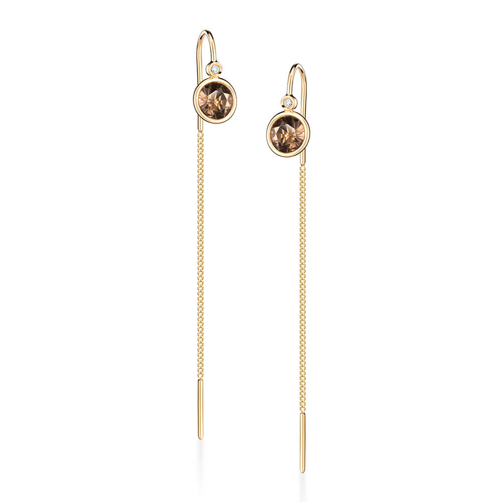 Brinco em ouro 18k amarelo com quartzo fumê e 0,02ct de brilhantes.