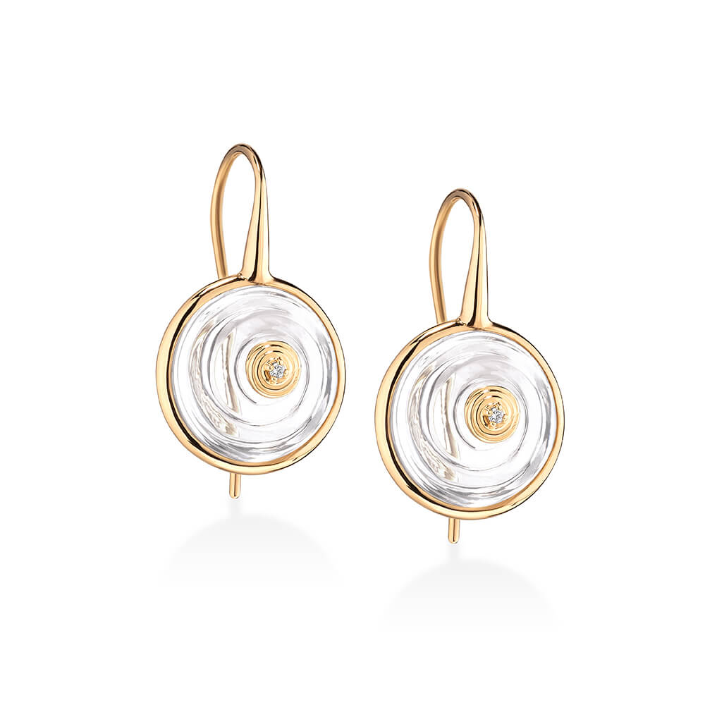 Brinco em ouro 18k amarelo com cristal e 0,02ct de brilhantes.