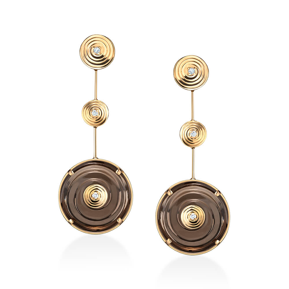 Brinco em ouro 18k amarelo com quartzo fumê e 0,05ct de brilhantes.