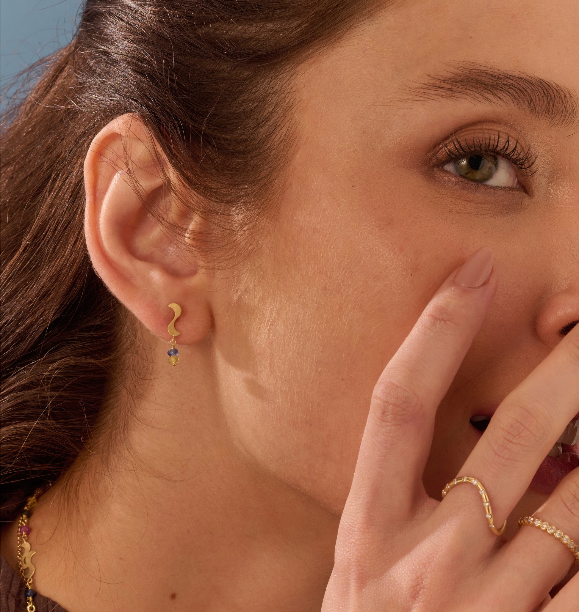 Confeccionado em ouro amarelo 18k, o brinco traz um movimento leve e orgânico característico da coleção Bossa. Seu design fluido é complementado por quatro safiras em tons variados, cuidadosamente selecionadas e montadas manualmente, criando um contraste delicado entre cor e metal. Uma joia delicada e versátil, que reflete a essência descontraída e sofisticada da bossa carioca — ideal para o dia a dia ou para composições cheias de personalidade.