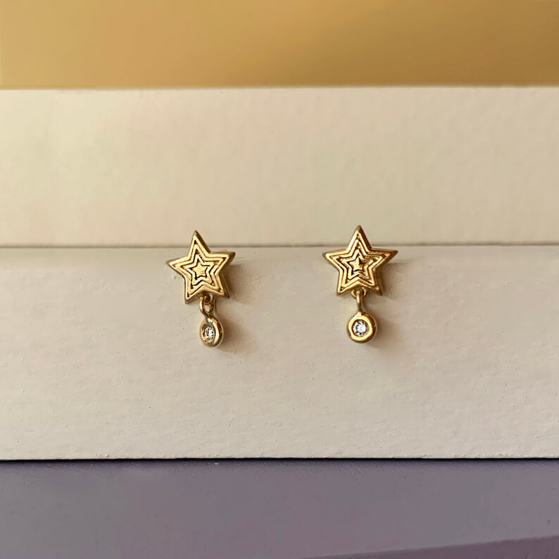 Brinco em ouro 18k amarelo com brilhante de 0,01ct cada.
