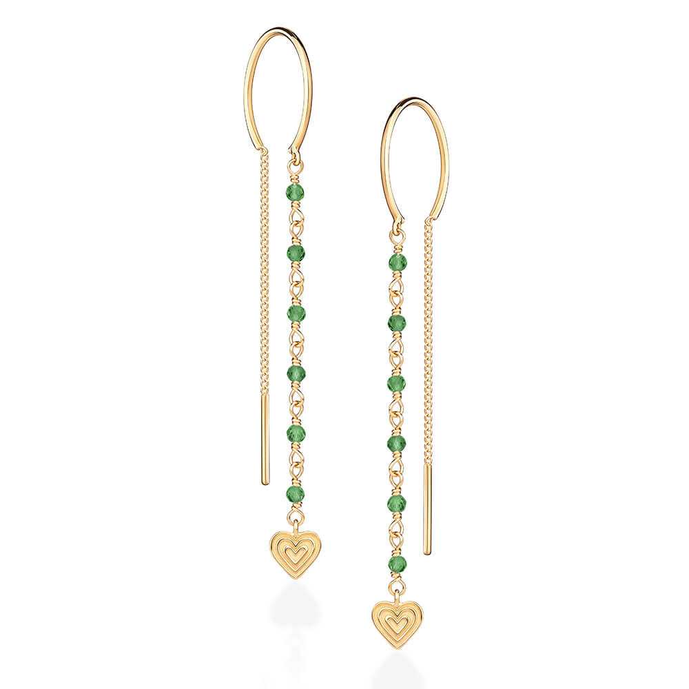 Brinco em ouro 18k amarelo com esmeraldas.