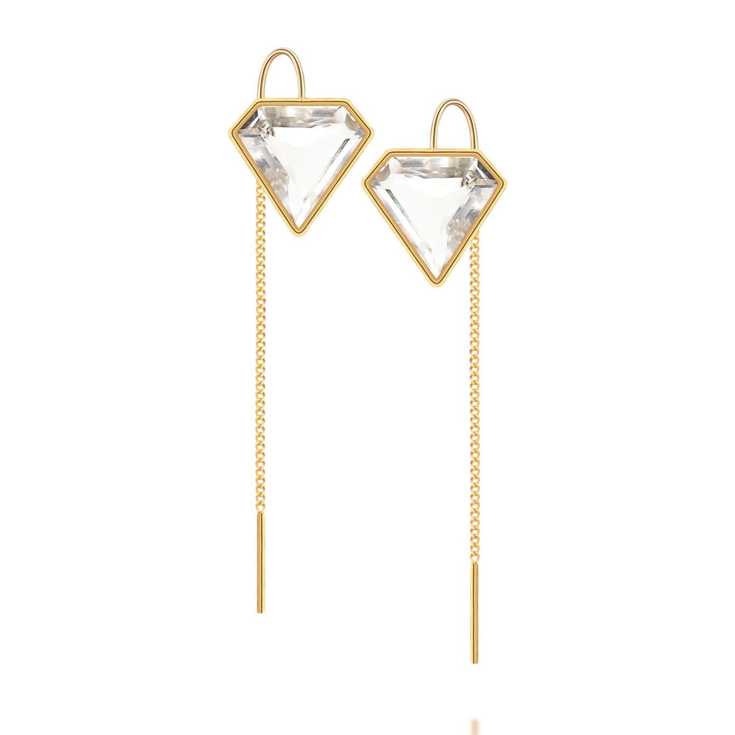 Brinco em ouro 18k amarelo ou branco com quartzo incolor.