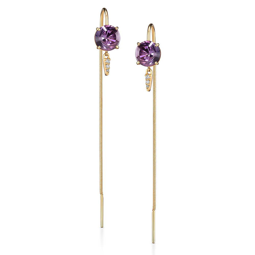 Brinco em ouro 18k amarelo ou branco com ametista e brilhantes de 0,05ct. Mede 6cm de comprimento.
