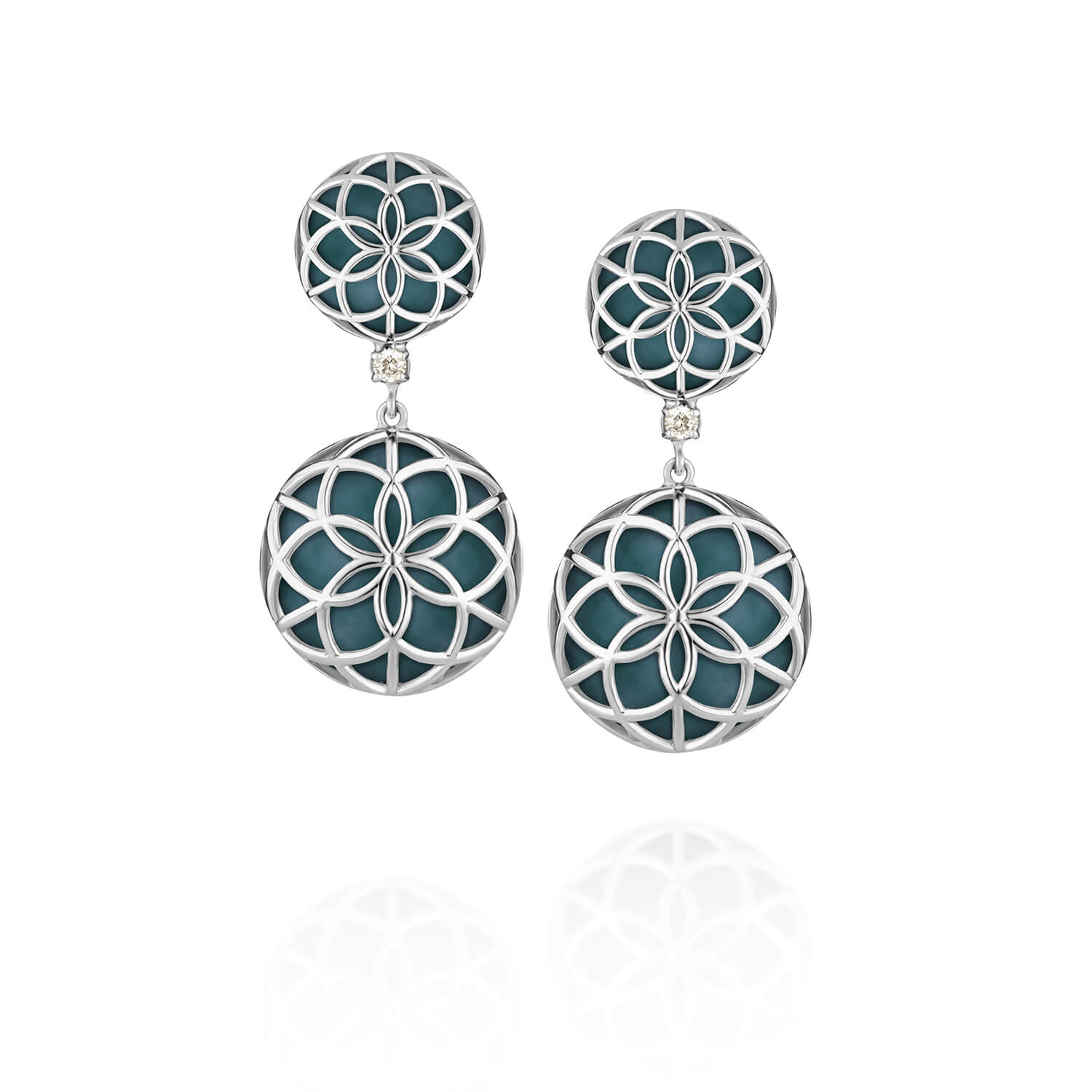 Brinco em ouro 18k branco com quartzo azul cobalto.