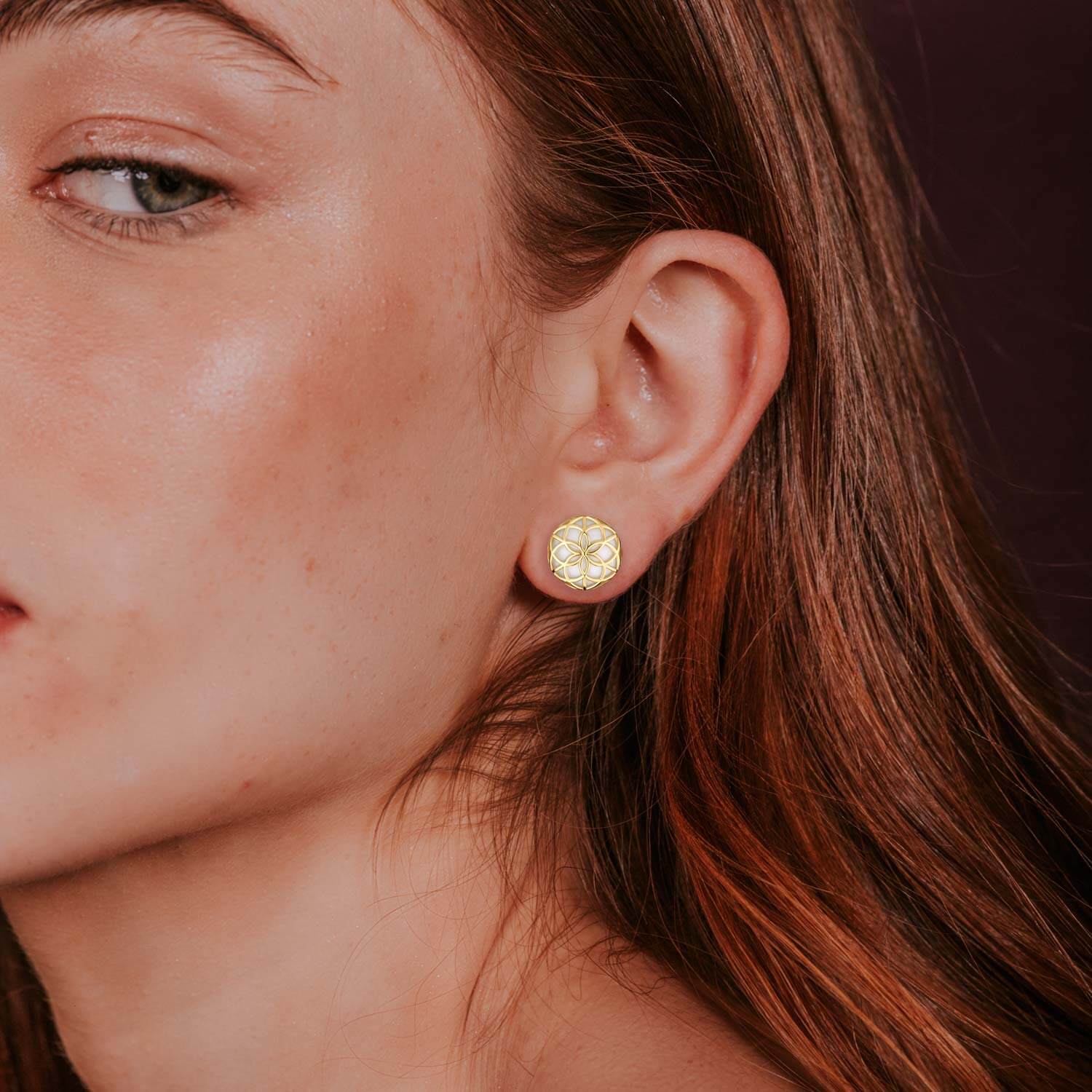 Brinco em ouro 18k amarelo com quartzo marfim.