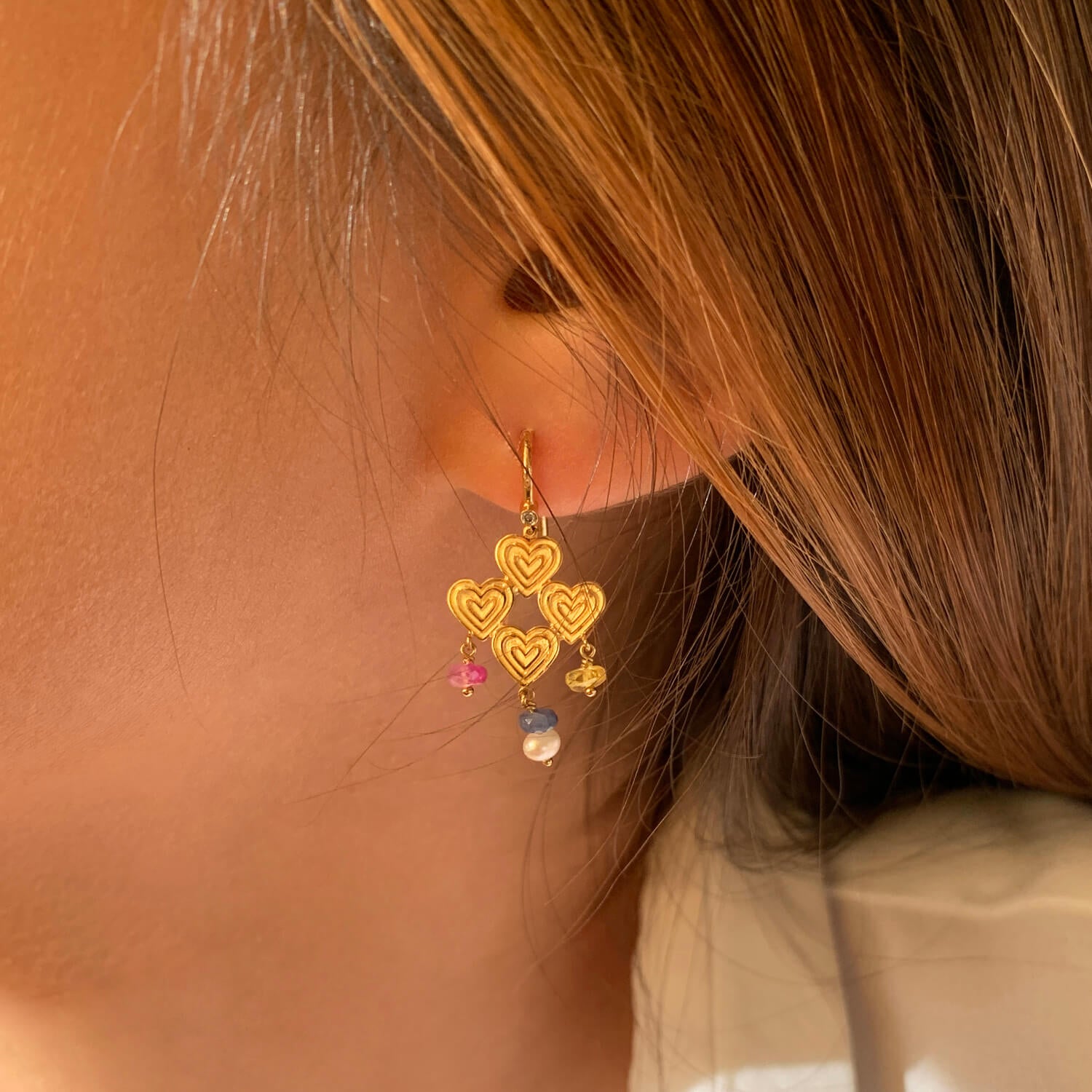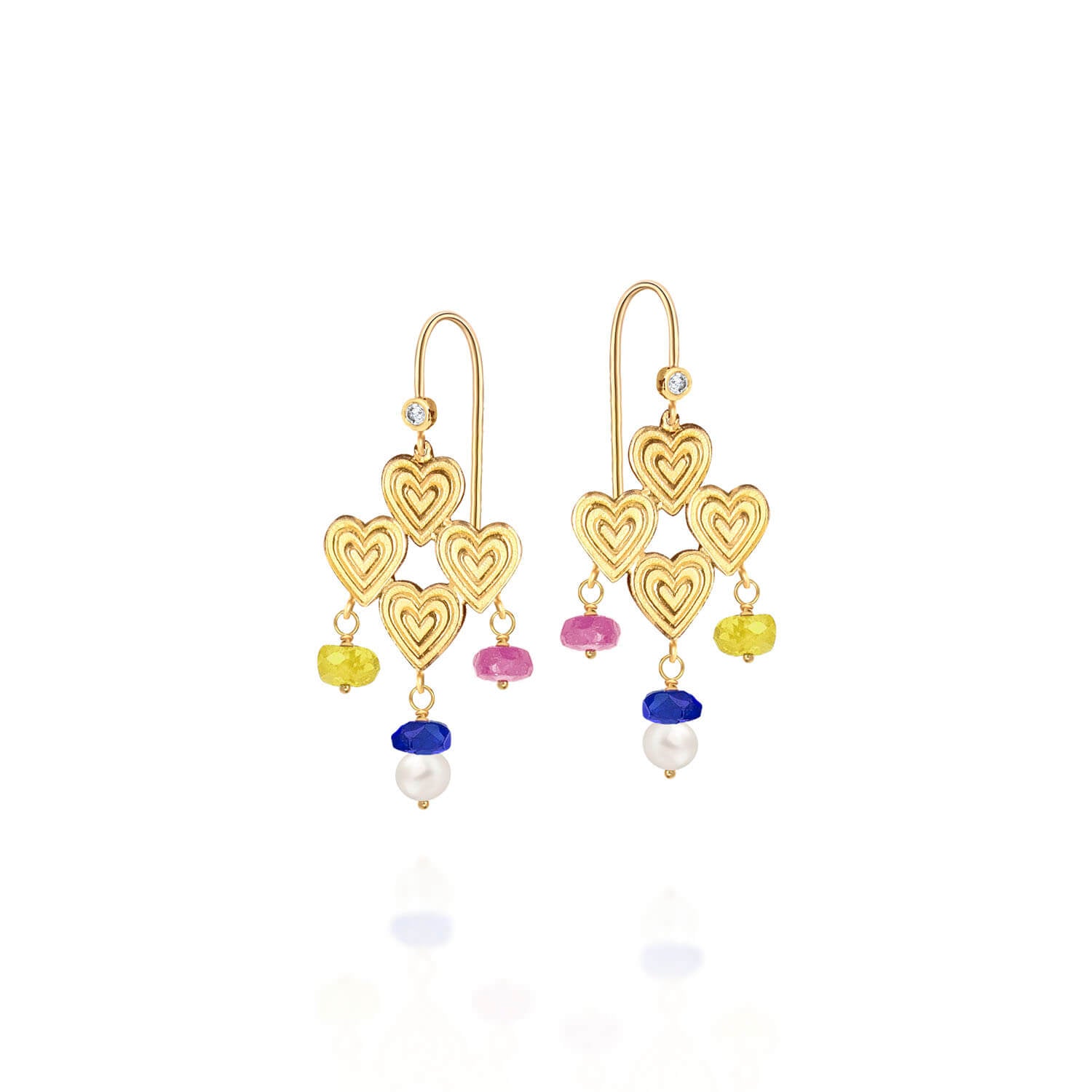 Brinco em ouro 18k amarelo com safiras e diamante.