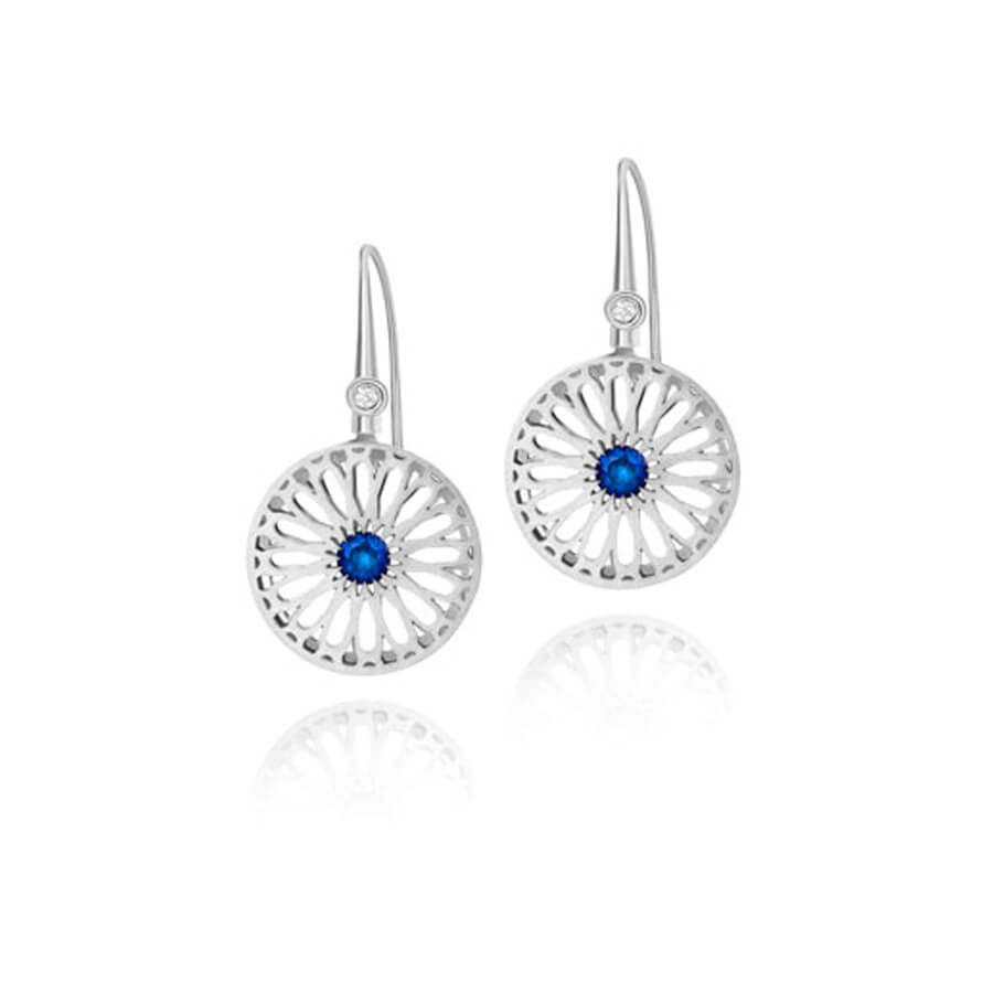 Brinco em ouro 18k branco com 02 brilhantes totalizando 0,04ct e 02 Safiras Azuis de 4mm.