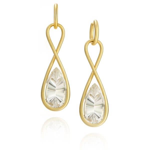 Brinco em ouro 18k amarelo com cristal transparente.