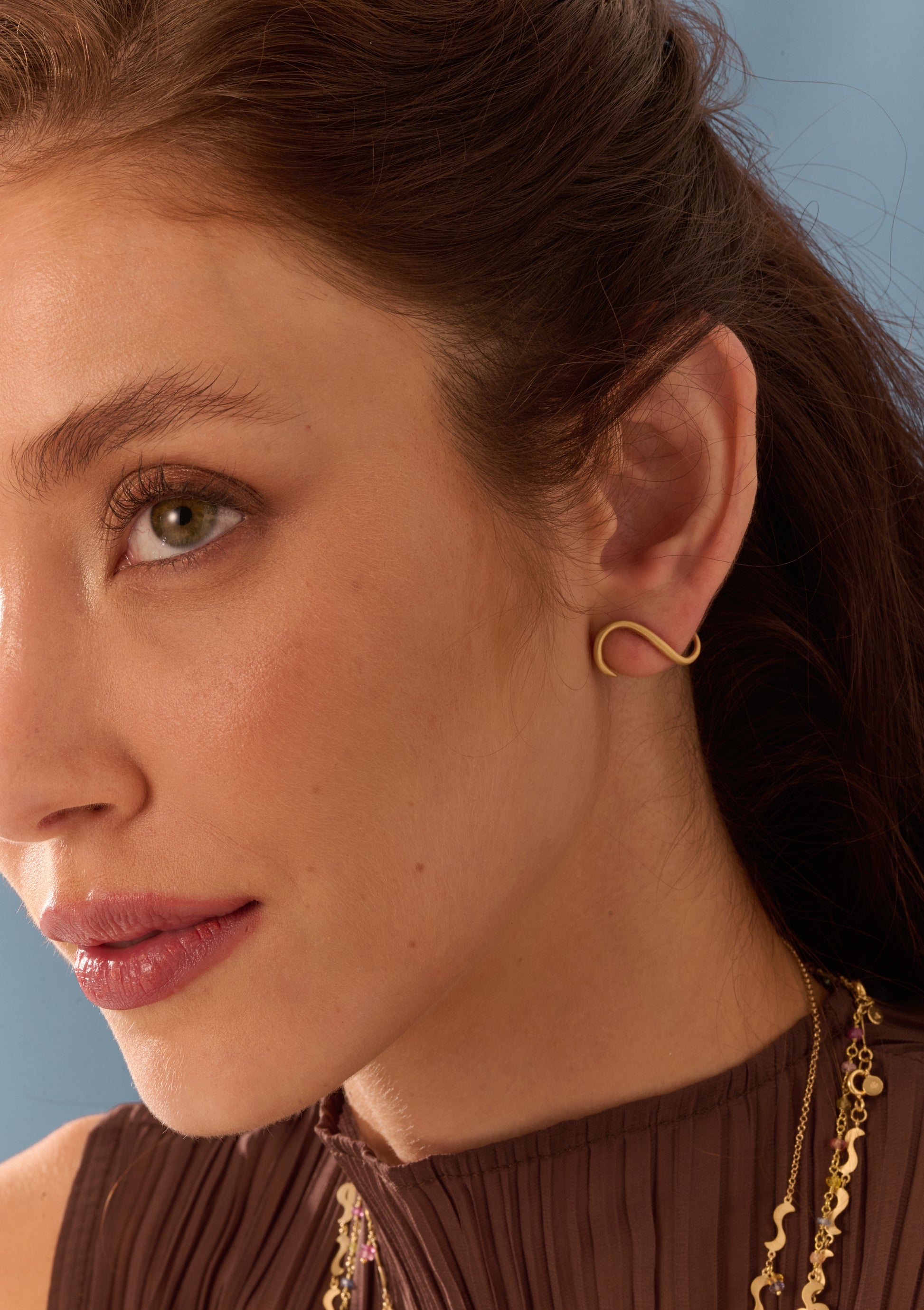 Confeccionado em ouro amarelo 18k, com acabamento acetinado, o Brinco Bossa Dual foi inspirado na fluidez das formas do Rio, traduzindo o espírito leve e versátil da coleção Bossa.