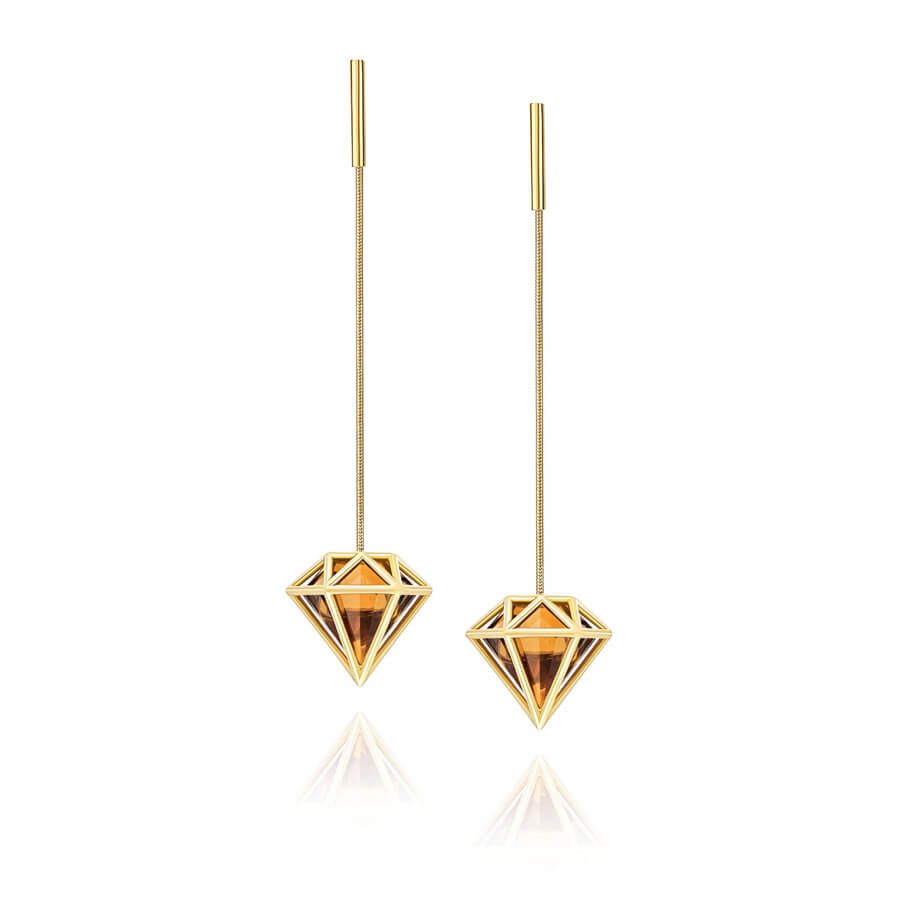 Brinco em ouro 18k amarelo, branco ou rosa com pedra lapidada em forma de brilhante.