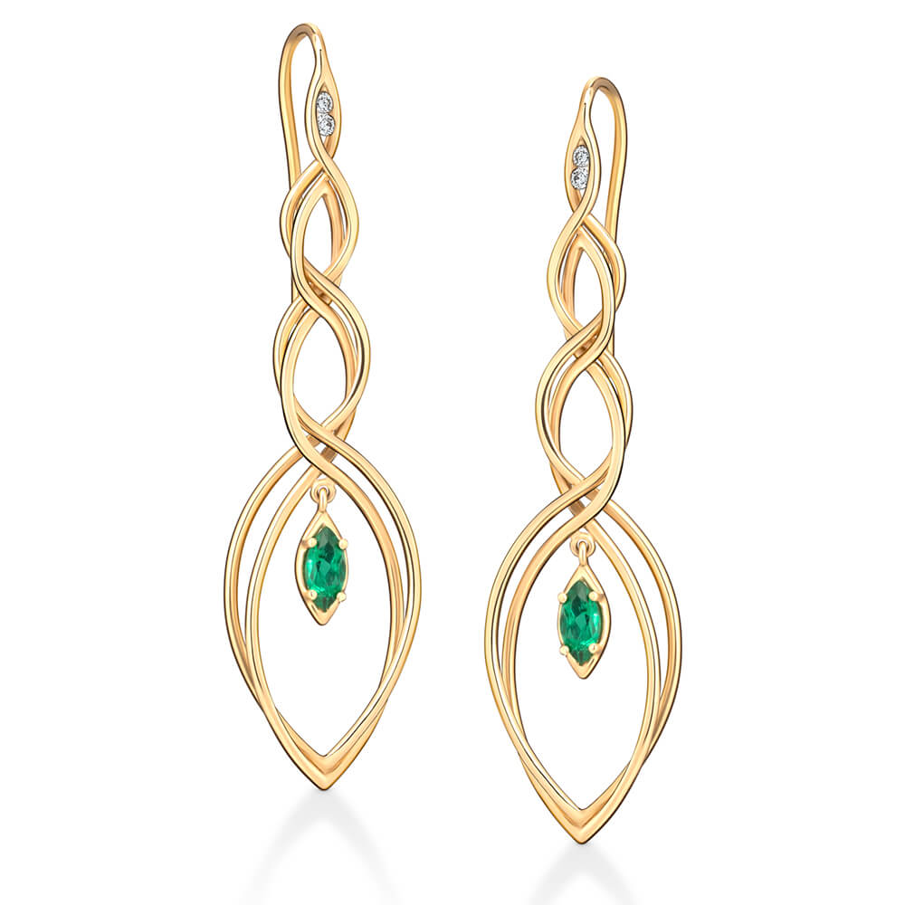 Brinco em ouro 18k amarelo com esmeralda e brilhantes.