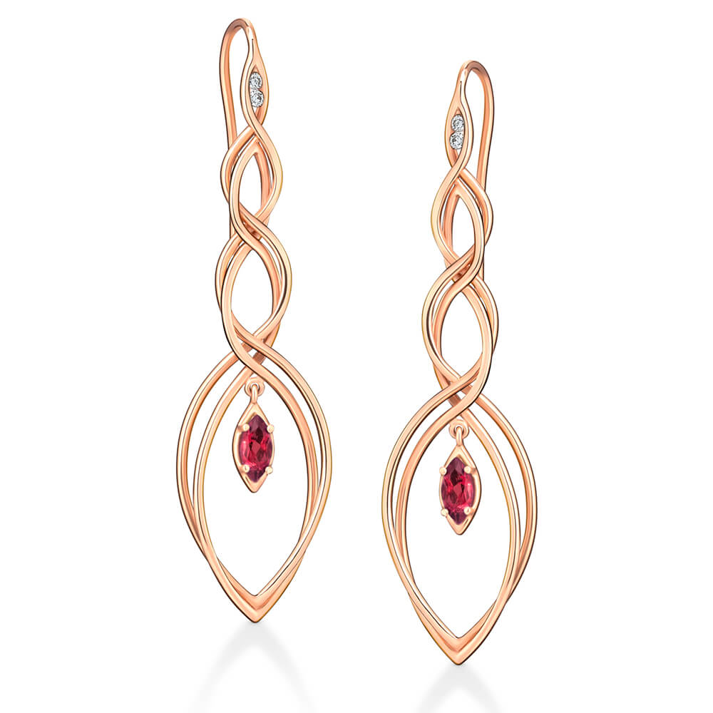 Brinco em ouro 18k rosa com rubi e brilhantes.