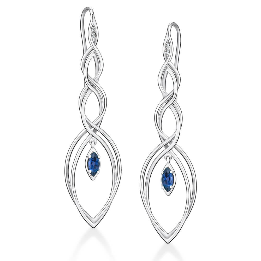 Brinco em ouro 18k branco com safira e brilhantes.