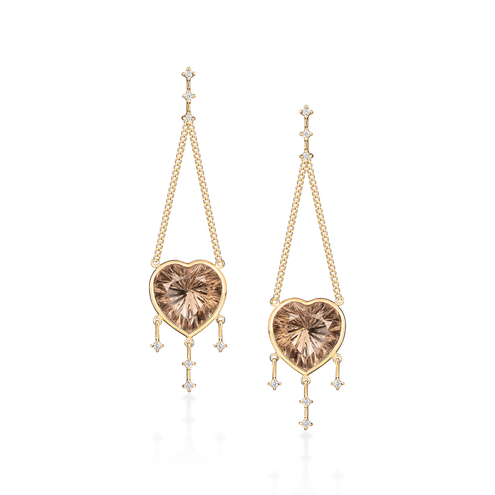 Brinco em ouro 18k amarelo com quartzo fumê e brilhantes.