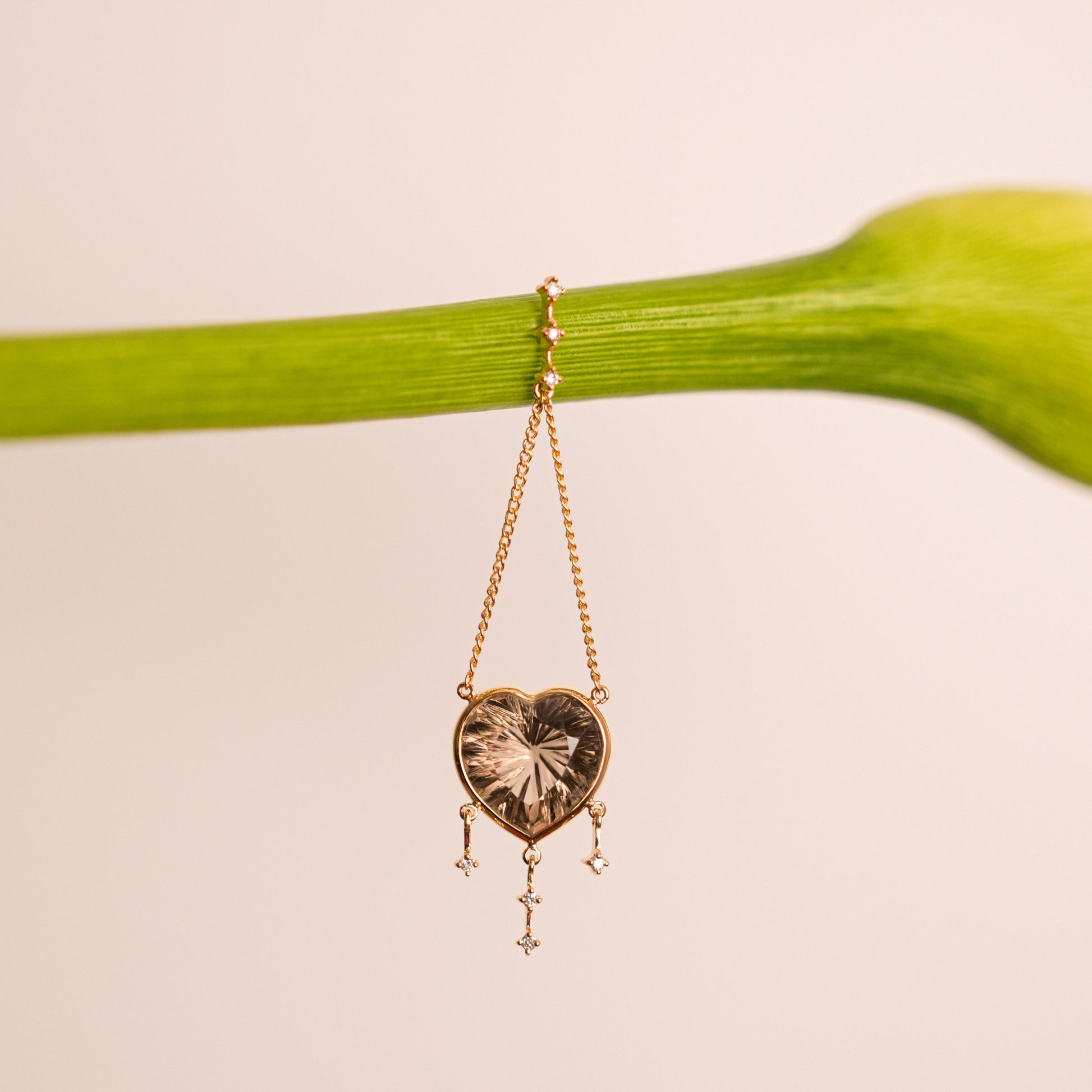 O Brinco Pulse Fumê 2 em 1 é confeccionado em ouro 18k e 0,112ct de diamantes. A peça apresenta um design versátil: pode ser usado apenas com a cabeça cravejada de diamantes, para um visual mais delicado, ou completo com a corrente e o quartzo fumê de lapidação exclusiva, que valoriza o brilho e a profundidade da pedra. A cabeça do brinco mede 0,9cm, enquanto a versão completa atinge aproximadamente 5,5cm — equilibrando leveza, movimento e sofisticação. Além do brinco, a linha Pulse também conta com um colar e um anel — e também está disponível na versão com cristal.