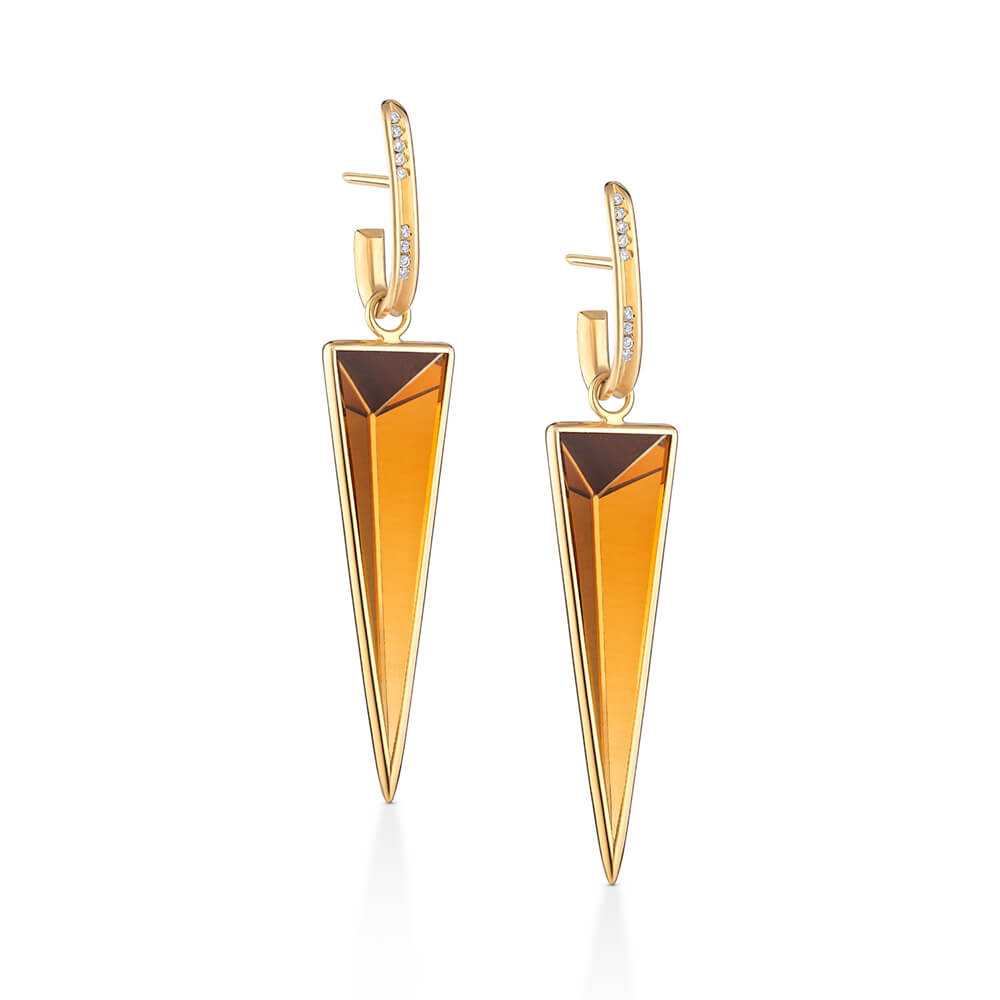 Brinco em ouro 18k amarelo com citrino e brilhantes.