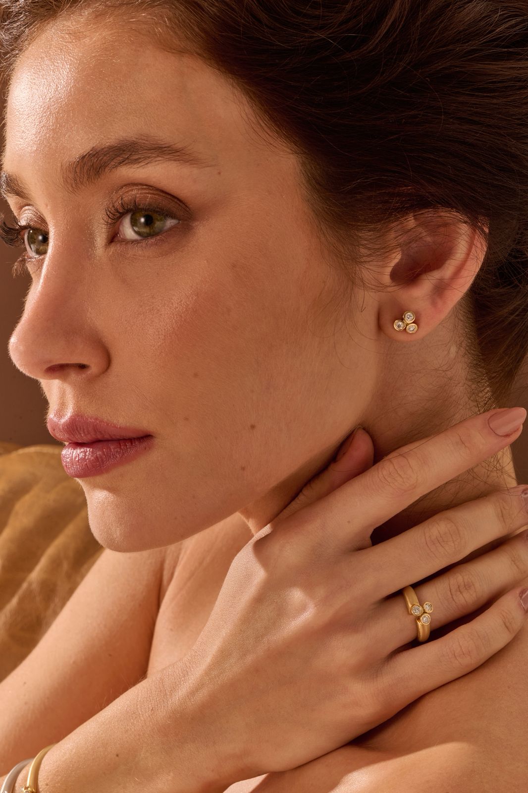 Confeccionado em ouro 18k, o Brinco Espeto Trilogia é inspirado no icônico design do Anel Trilogia. Com aproximadamente 8mm, apresenta dois conjuntos de três diamantes com lapidação brilhante, totalizando 0,48 ct, cravados em delicadas estruturas polidas que refletem o brilho de maneira intensa e contínua, Delicado e ao mesmo tempo marcante, é perfeito para quem valoriza peças contemporâneas com identidade e personalidade.