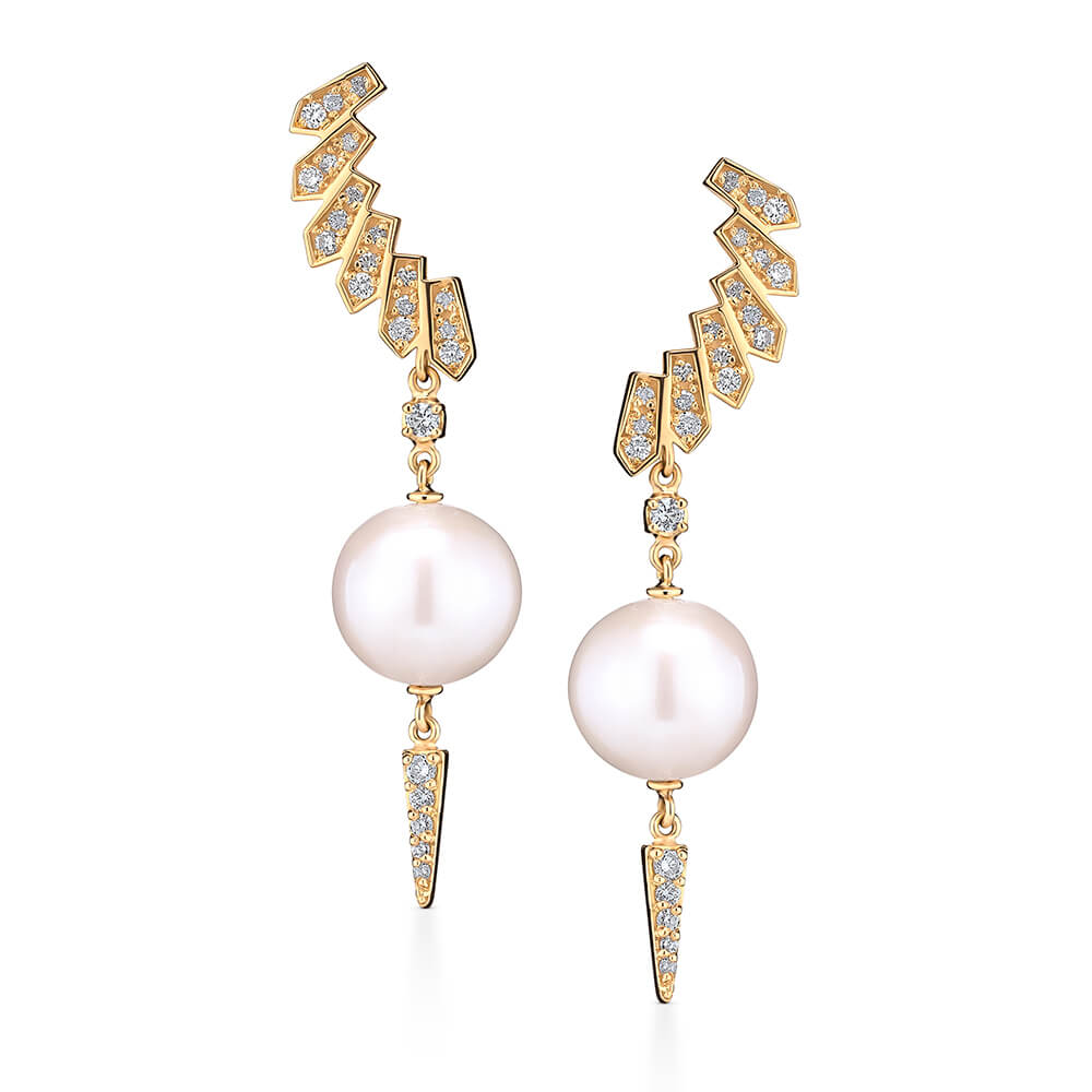 Brinco em ouro 18k amarelo com pérola e 0,36ct brilhantes.