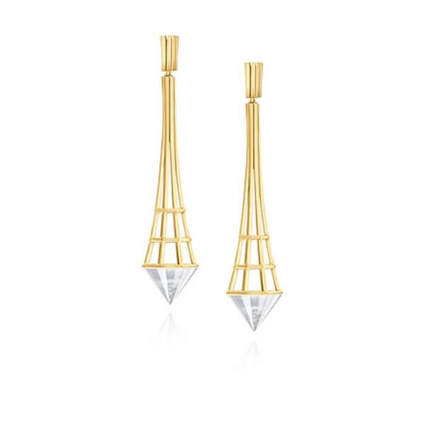 Brinco ouro 18k amarelo, branco e rosa com quartzo fumê, ônix ou cristal.