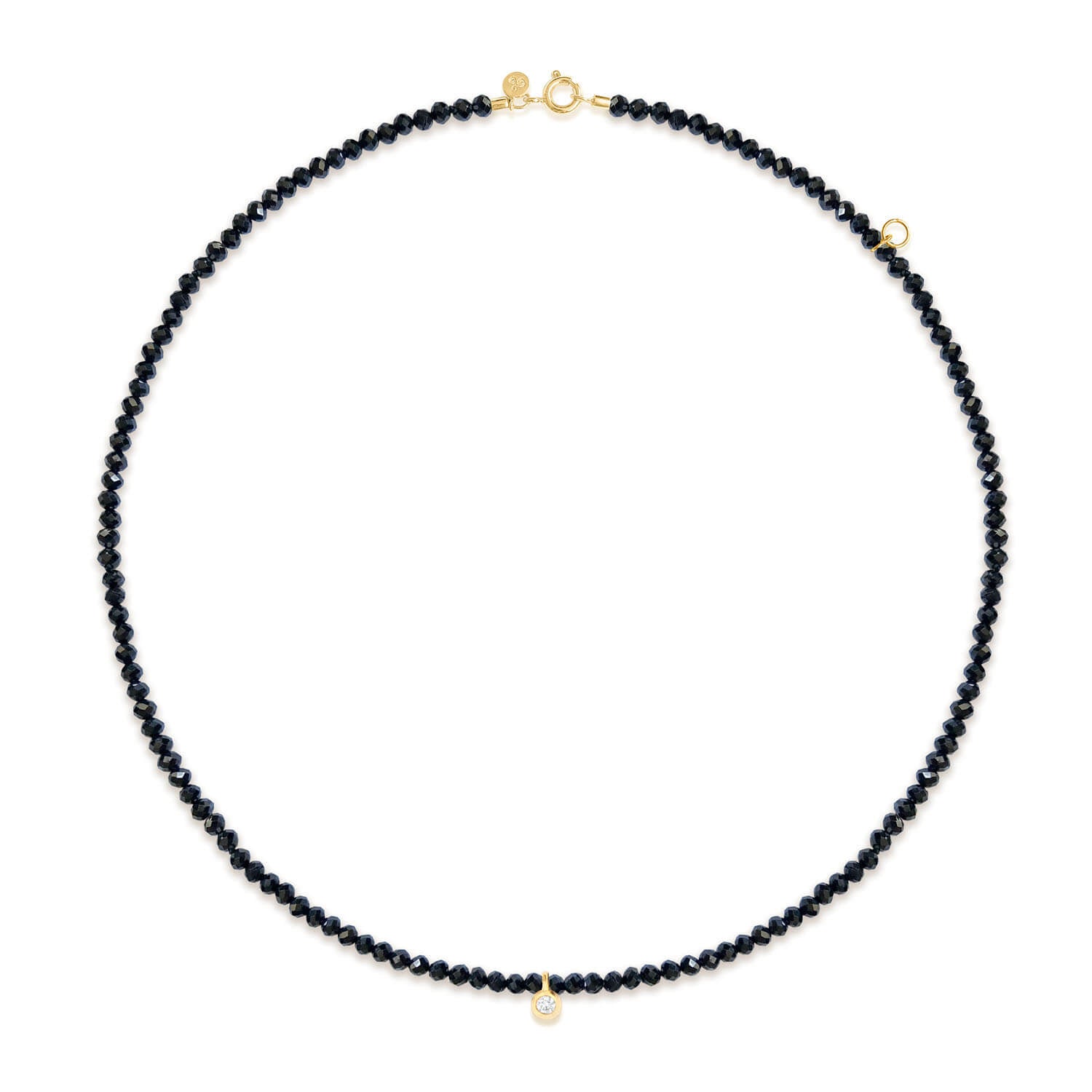 Gargantilha em ouro 18k amarelo com Espinélios negro e 1 brilhante de 0,03ct.