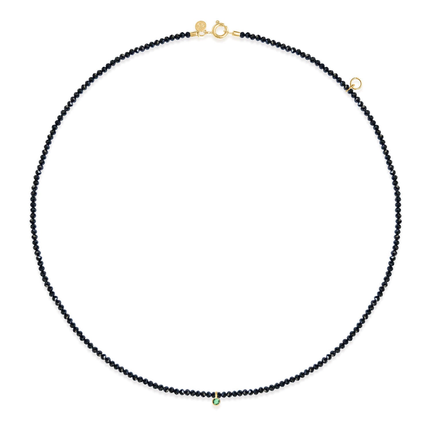 Colar em ouro 18k amarelo ou branco com espinélios negro e esmeralda.