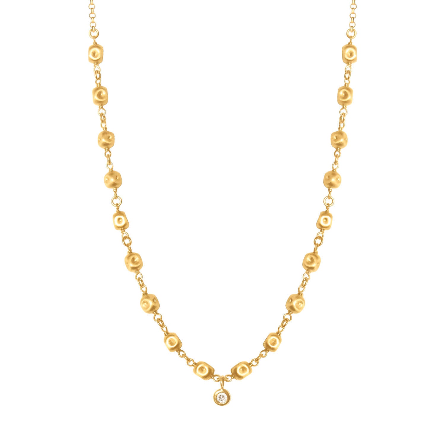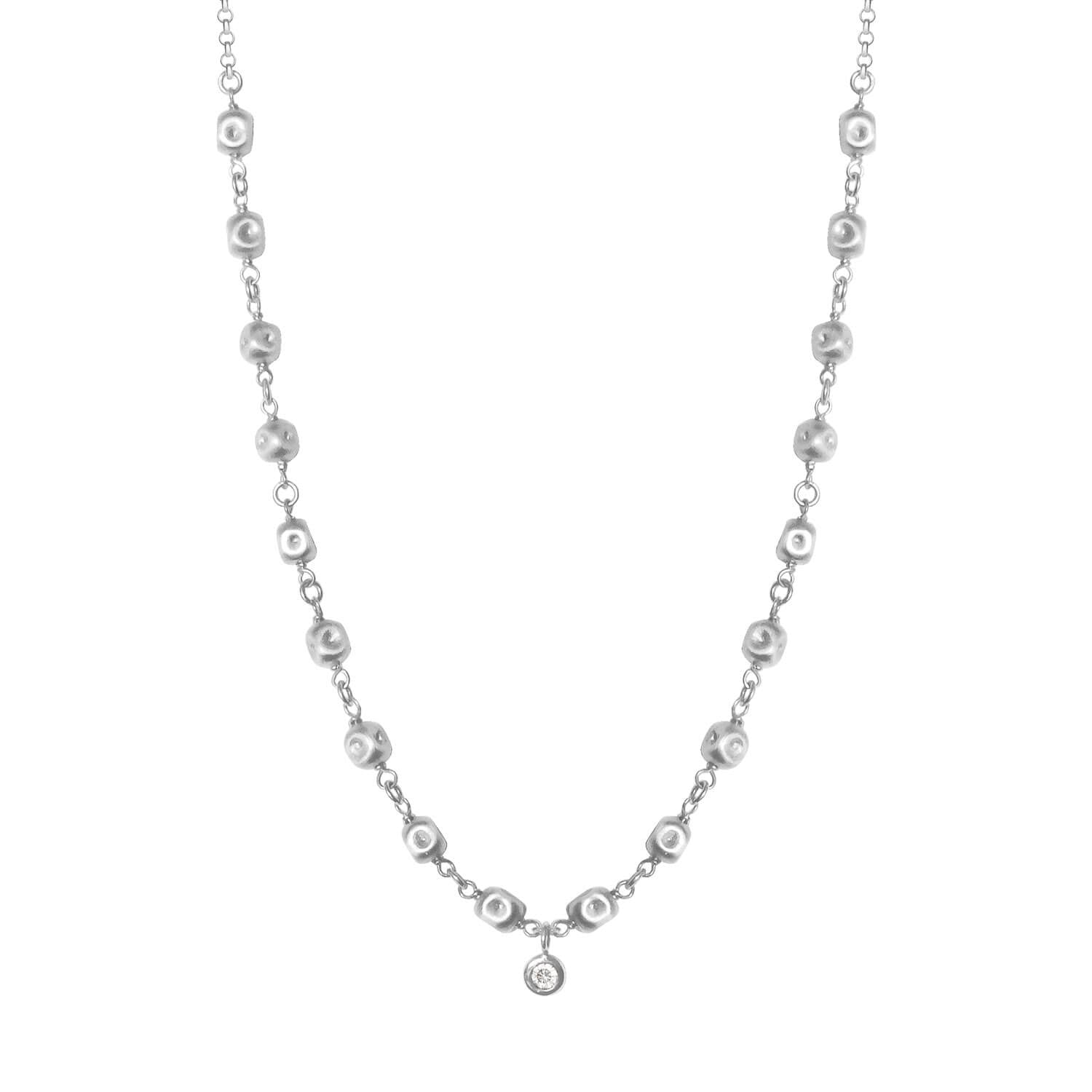 Colar ajustável Bolinhas Amassadas em ouro 18k amarelo ou branco medindo 70cm com 1 brilhante de 0,03cts.