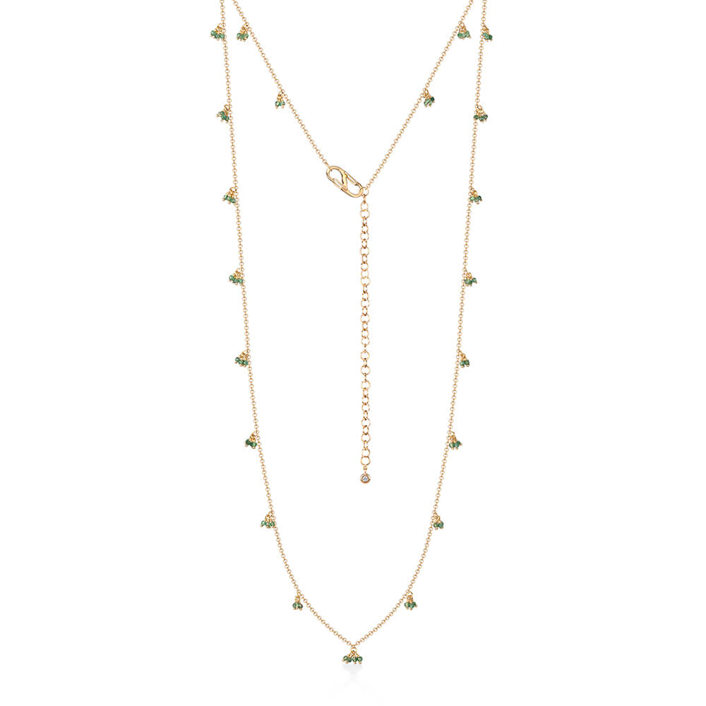 Colar em ouro 18k amarelo ou branco com esmeraldas e brilhante de 0,03ct.