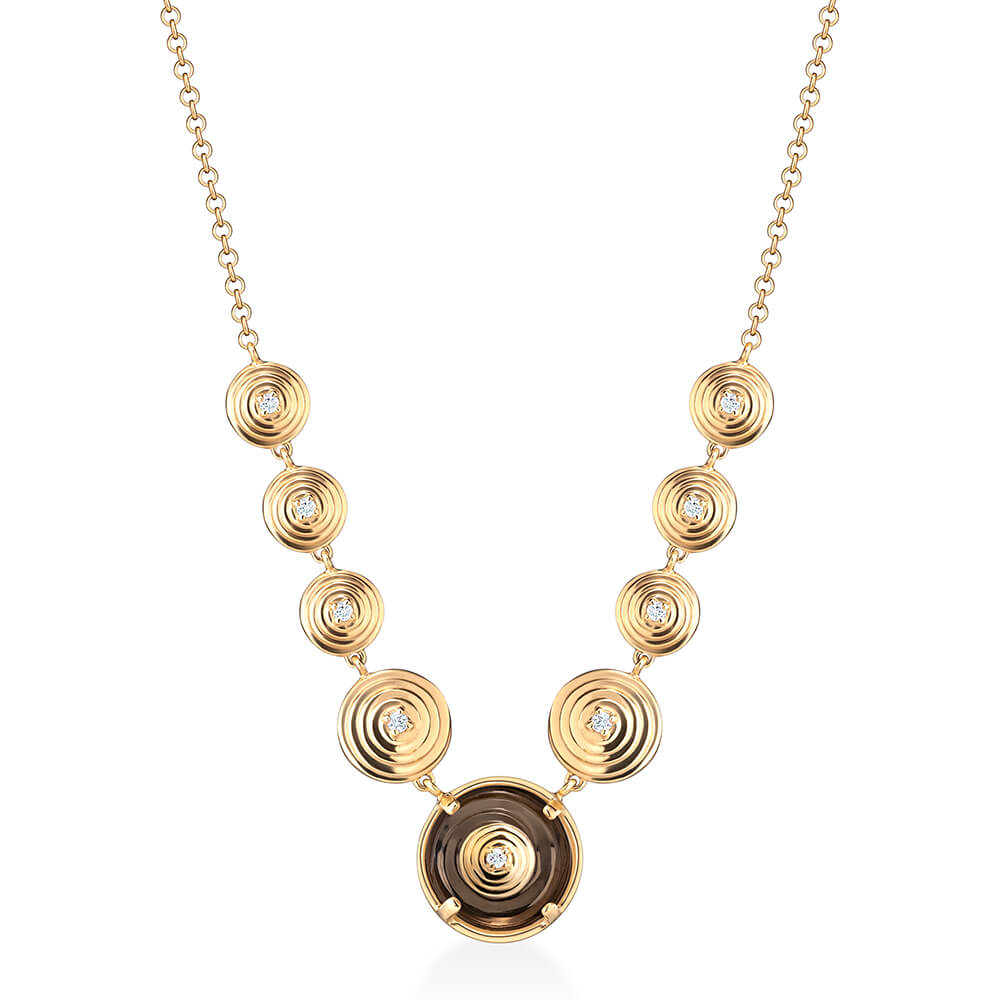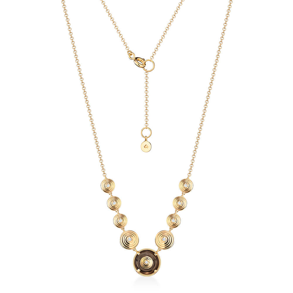 Colar em ouro 18k amarelo com quartzo fumê e 0,07ct de brilhantes.
