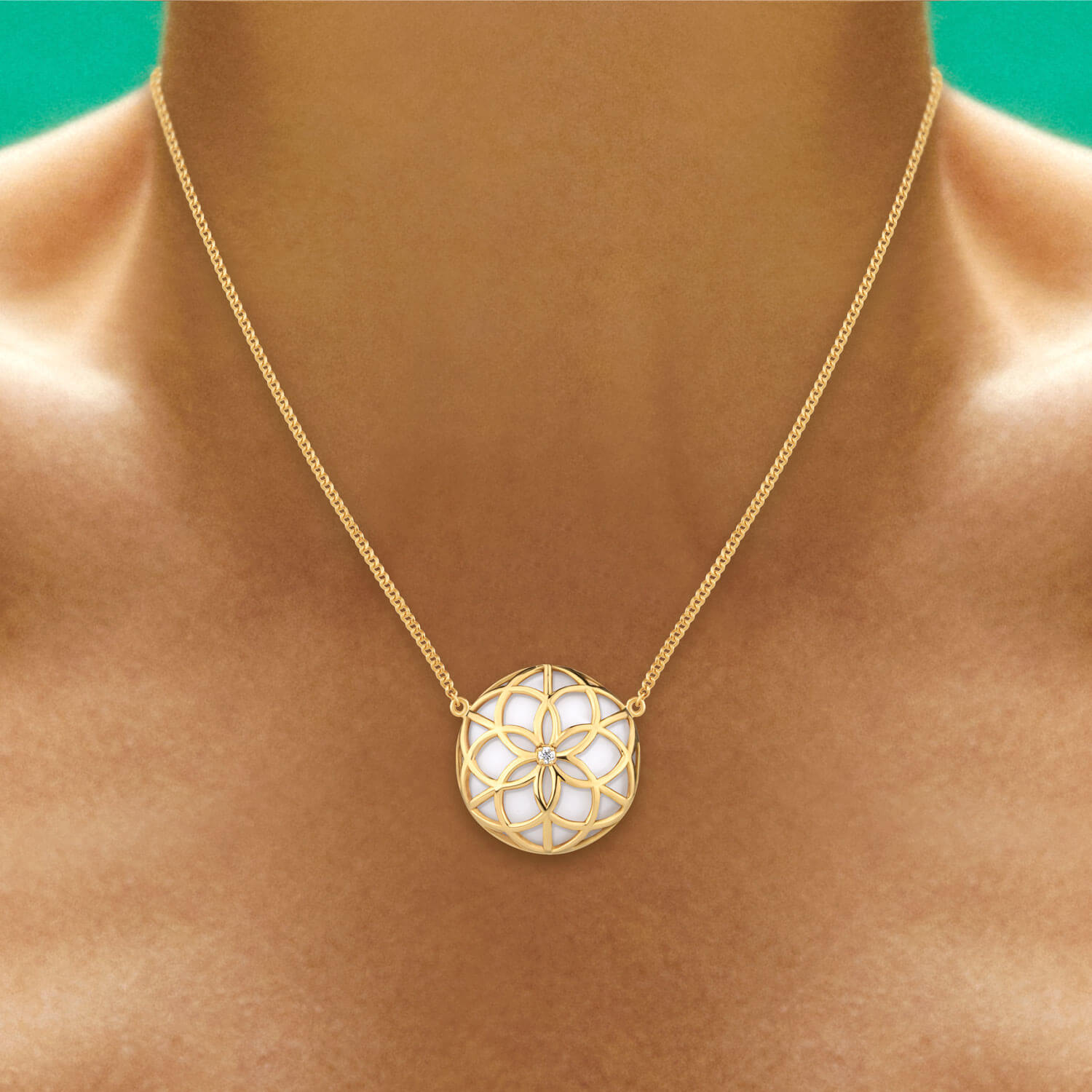 Colar em ouro 18k amarelo com brilhante e quartzo marfim.