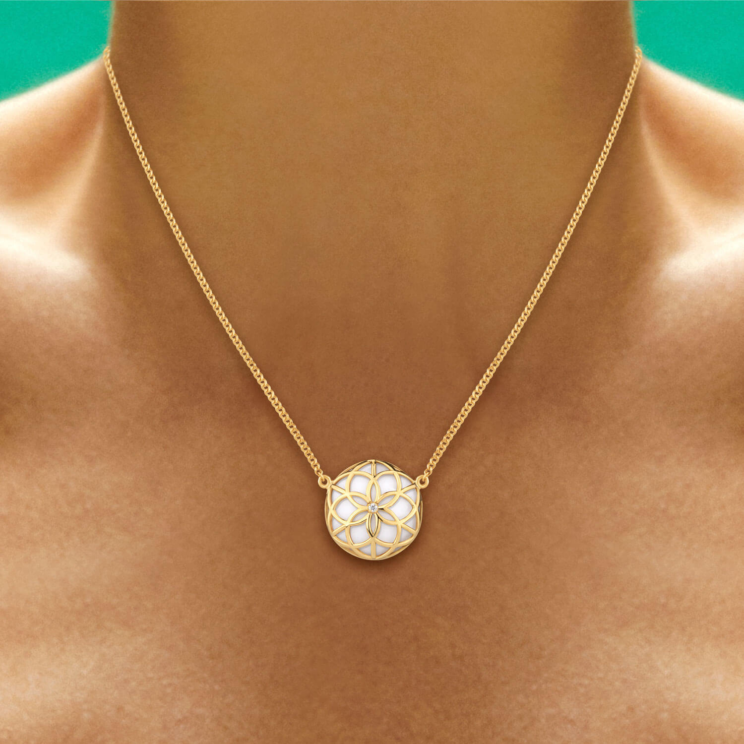 Colar em ouro 18k amarelo com brilhante e quartzo marfim.
