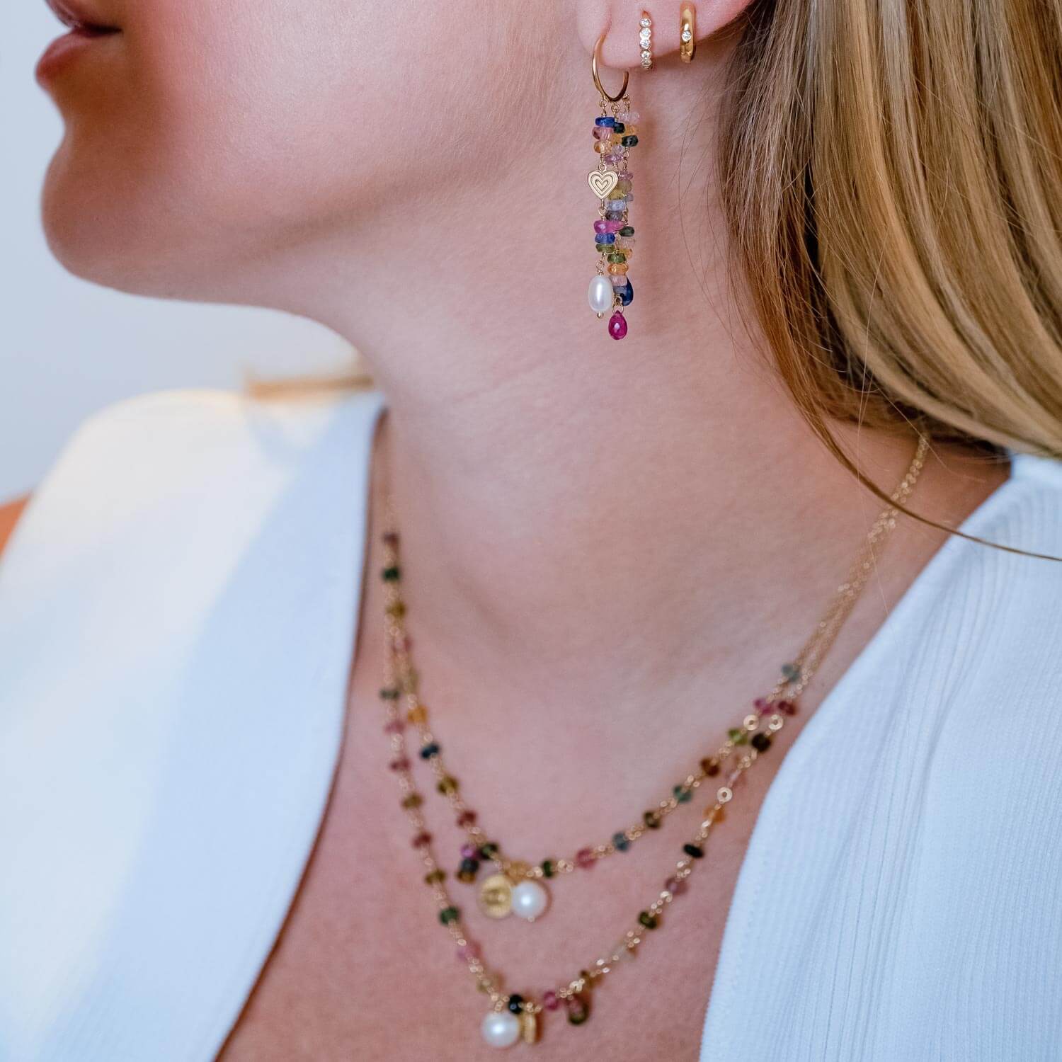 Colar em ouro 18k amarelo com turmalinas e pérola.