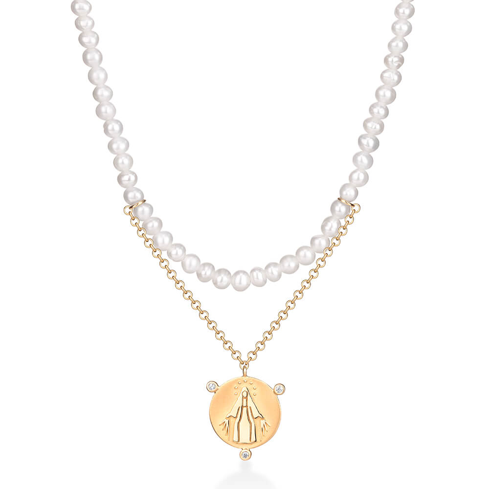 Colar em ouro 18k amarelo com pérolas e 0,03ct de brilhantes.