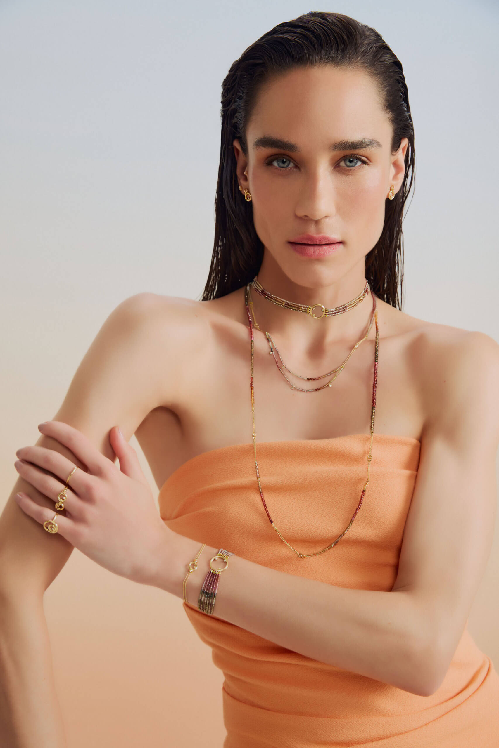 A Linha Sunlit reflete a beleza natural dos tons iluminados pelo sol, destacando o brilho das safiras terrosas. Com um estilo boho descontraído e jovem, as peças trazem leveza e autenticidade para iluminar qualquer momento.
