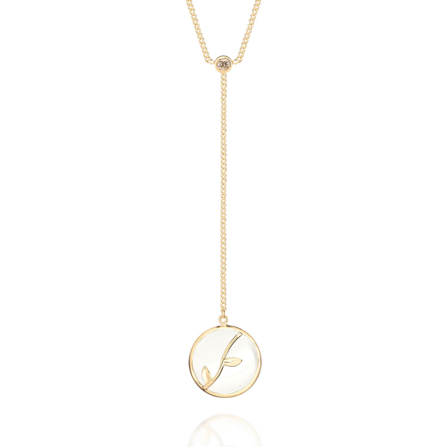 Colar em ouro 18k amarelo ou branco com quartzo branco e diamante brown.