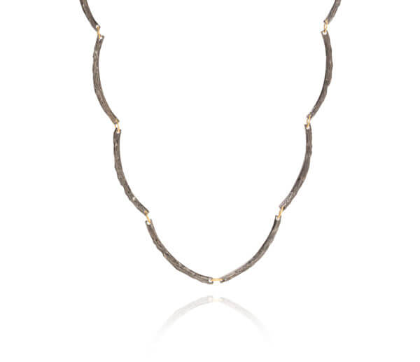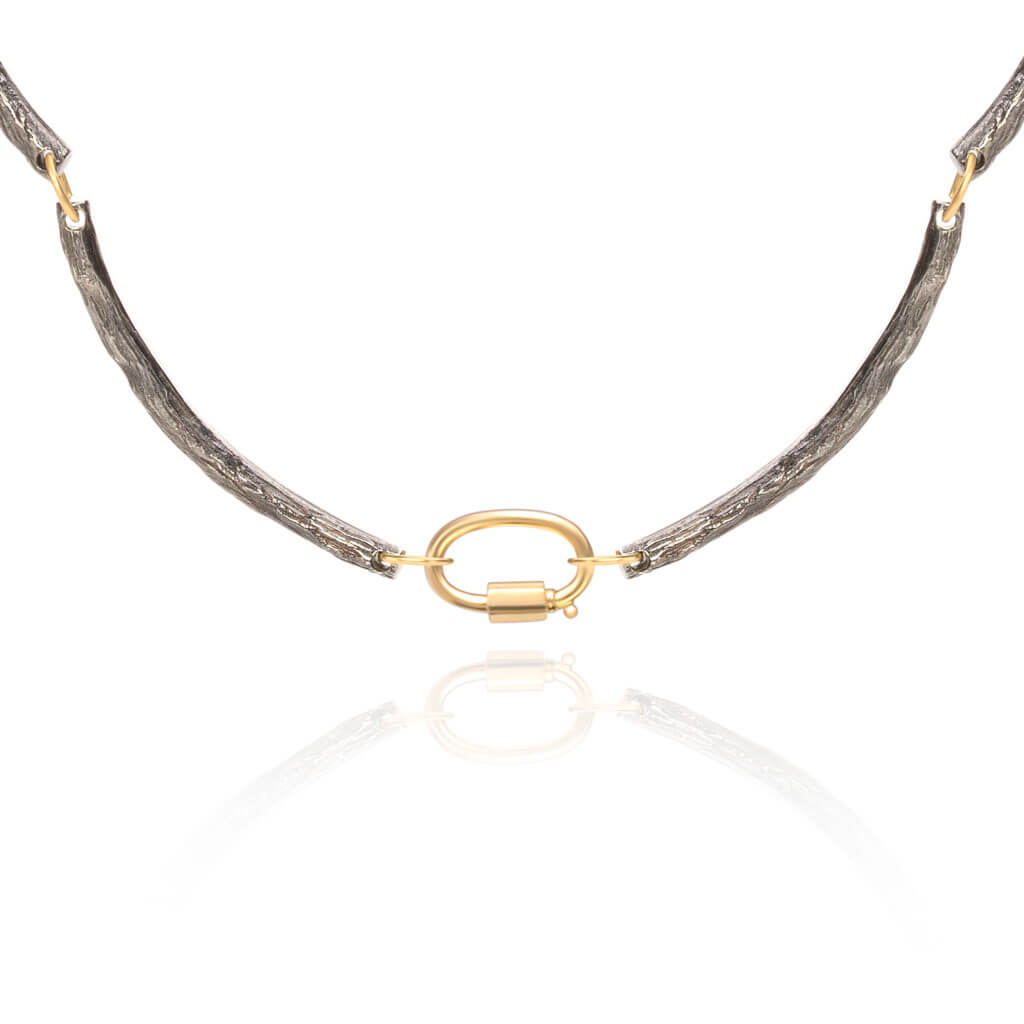 Colar versátil em prata 950 com banho de ródio negro e ouro 18k amarelo. Pode ser usado também como pulseira.