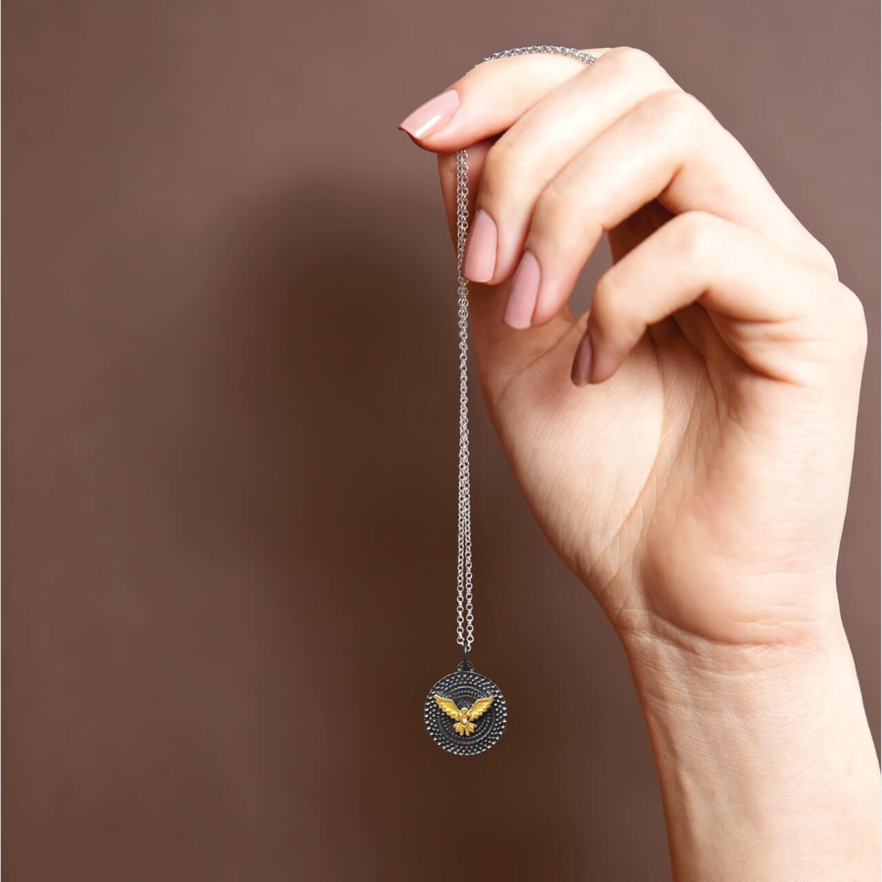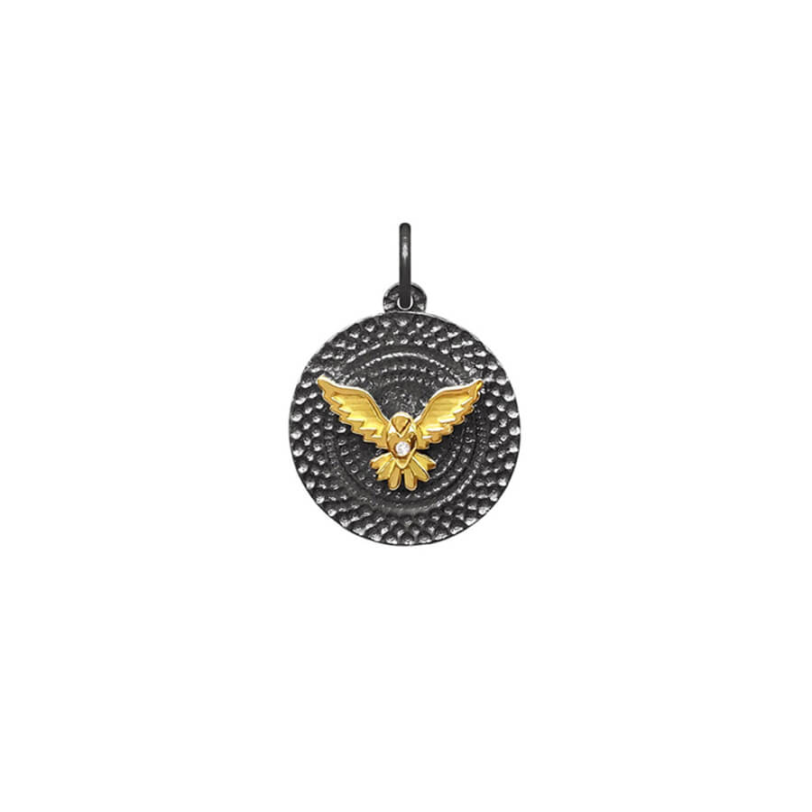 Pingente Amuleto em prata 925 e ouro amarelo 18K com brilhante.