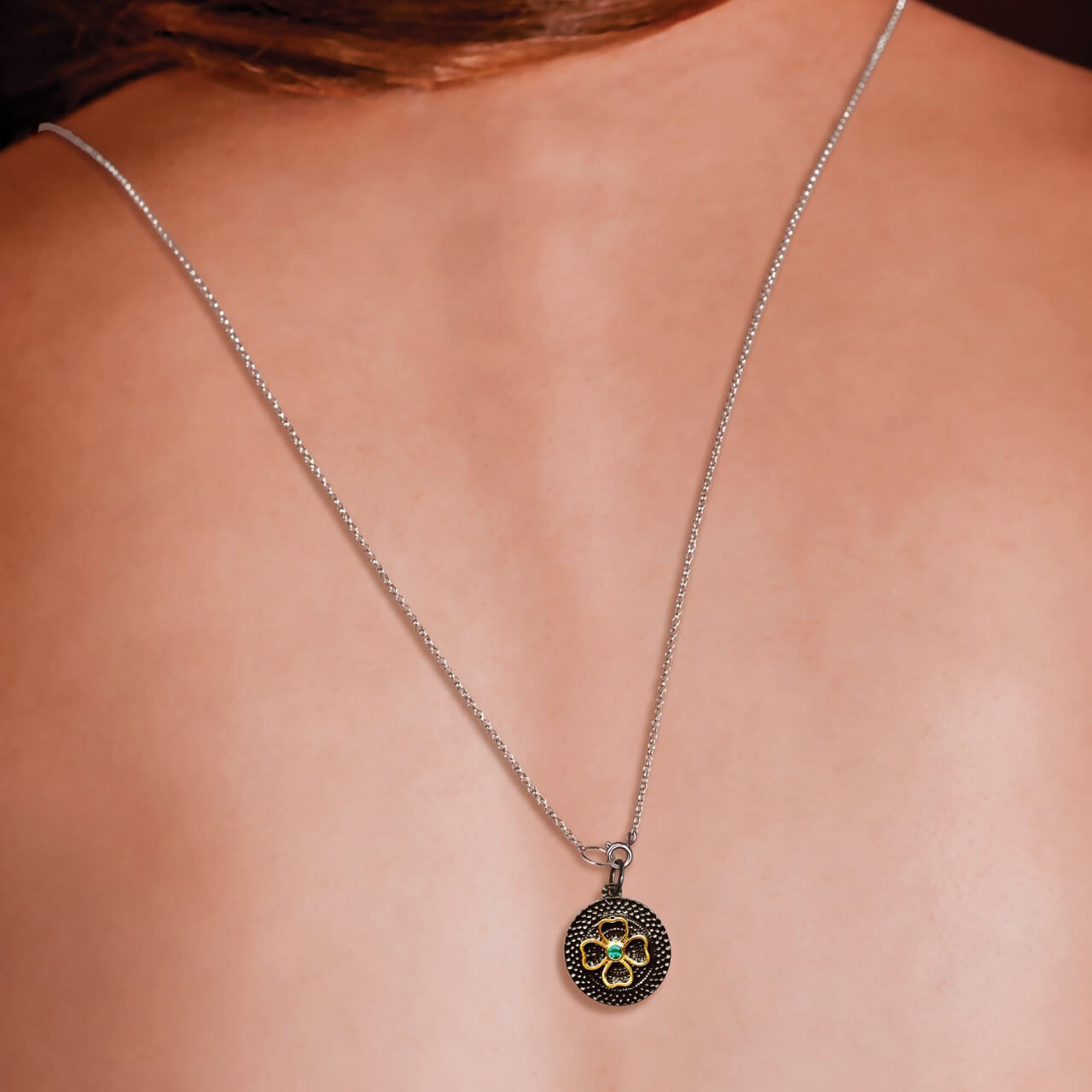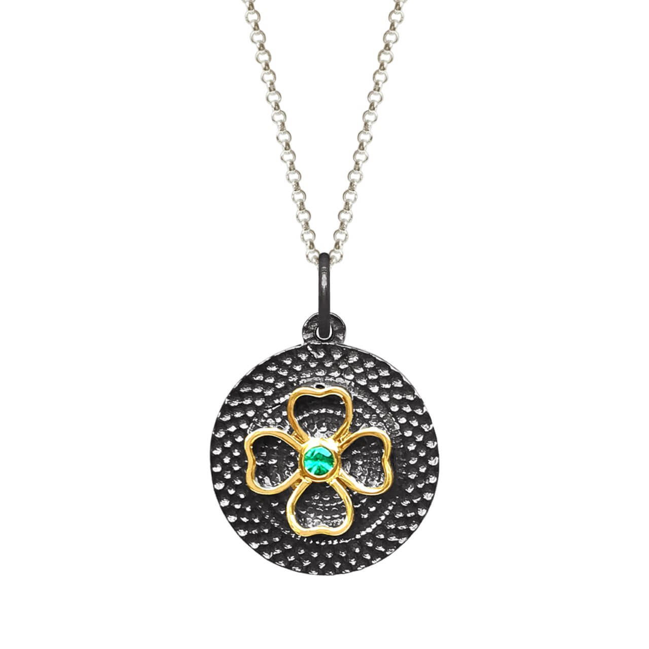 Pingente Amuleto em prata 925 e ouro amarelo 18K com esmeralda.